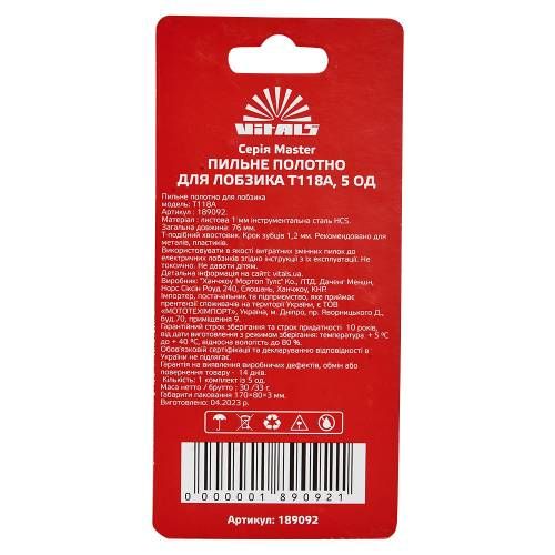 Основные преимущества пиляльного полотна Vitals Master T118A 5 шт.: высокое качество изготовления, точный прямой рез, долговечная эксплуатация, высокая скорость реза, подходит для работы с металлом и цветными металлами.