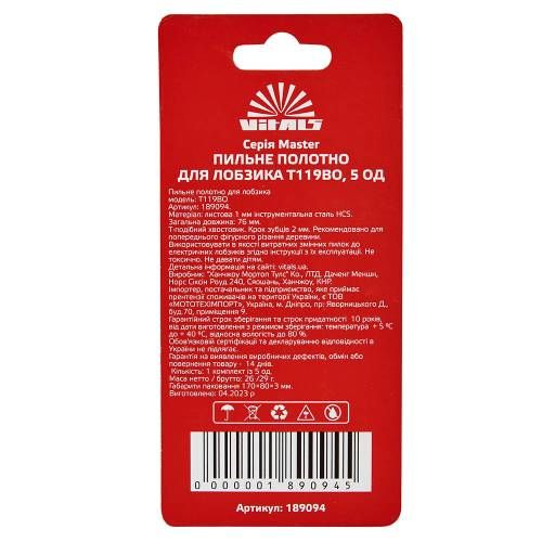 Основными преимуществами пильного полотна Vitals Master T119BO являются: высокое качество изготовления, долговечность и надежность, быстрая и качественная резка материалов, удобный и надежный захват.