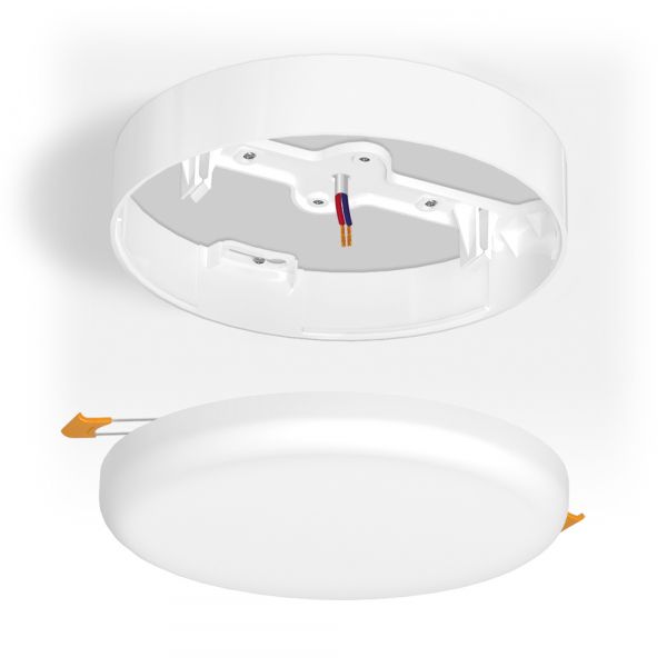 VL-DLFR-24SF -рамка для накладного монтажа встроенных (врезных) круглых светильников. Простыми действиями рамка позволяет модернизировать встроенный светильник и использовать его в качестве накладного. Крепится она на любую жесткую и ровную поверхность (стена, потолок, мебель и др.), что увеличивает варианты для монтажа, а следовательно и для установки освещения с помощью светильника. Рамка имеет достаточное количество отверстий для надежной фиксации поверхности.