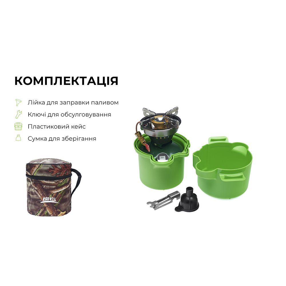 Жидкотопливная горелка BRS-29B – это надежный туристический прибор для приготовления пищи и нагрева воды в полевых условиях. Работает на жидком топливе, в частности, бензине (рекомендуется автомобильный бензин не ниже А-93). Благодаря прочной металлической конструкции горелка выдерживает интенсивную эксплуатацию, обеспечивая стабильное горение даже при низких температурах и ветре.