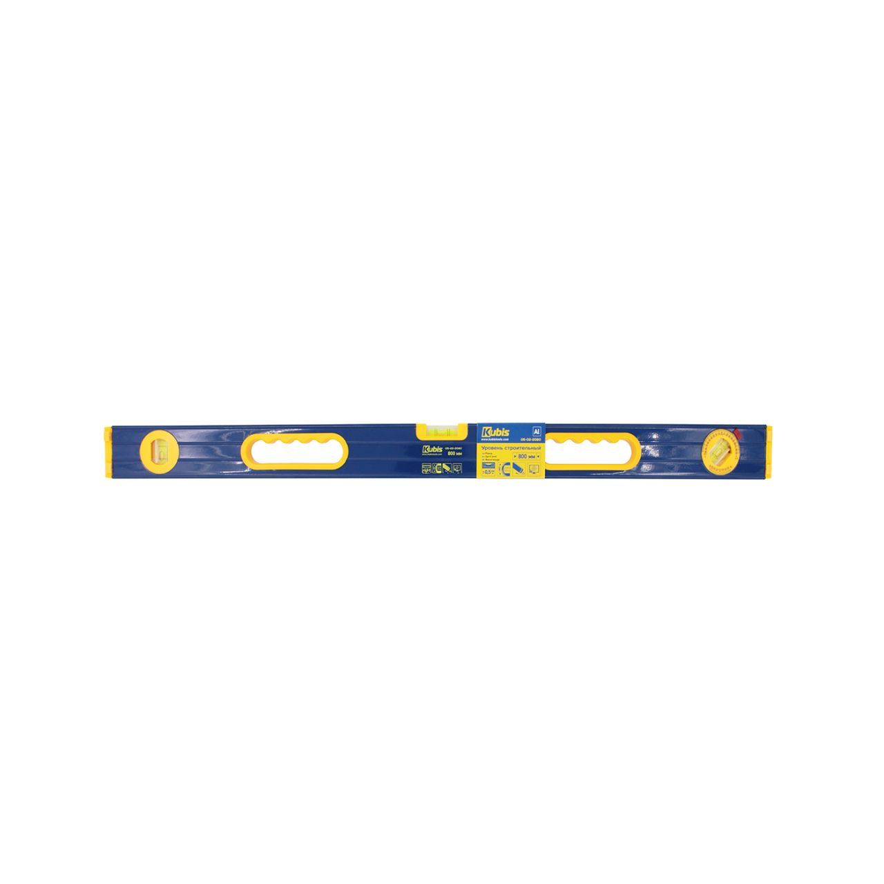 Уровень с ручками 800 мм c точностью 0,5 мм/м и регулируемой капсулой на 360°. Антивибрационные упоры обеспечивают надежную фиксацию на поверхности. Длина уровня составляет 80 см. Он имеет пузырьковый вид и противоударные особенности. Количество измерительных капсул - 3 шт.