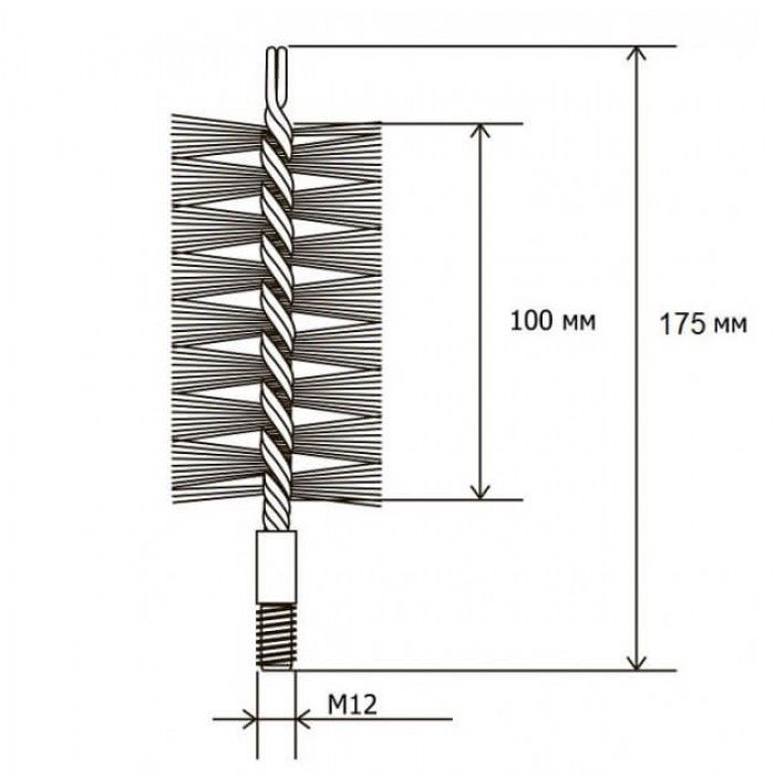 Эта щетка идеально подходит для чистки теплообменников котлов и труб, загрязненных сажей и накипью. Она может использоваться в домашних и промышленных условиях.