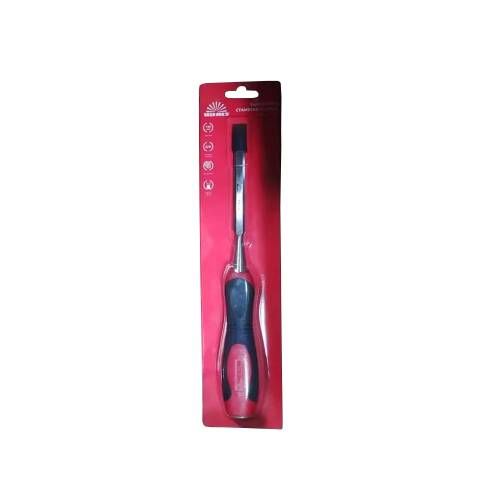 прорезиненная рукоятка из ударопрочного пластика с металлической пяткой.