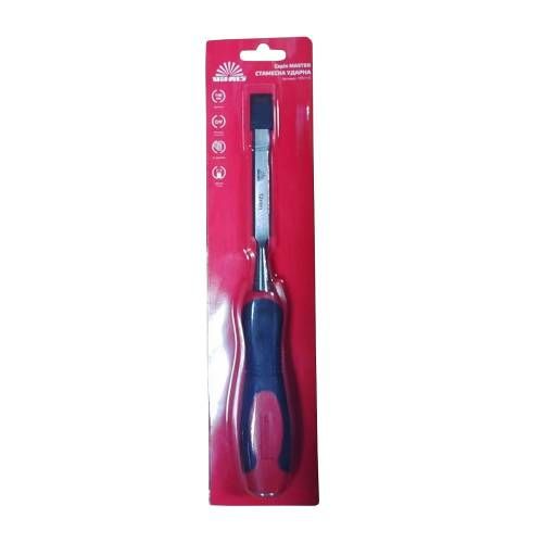 Стамеска 12×140 мм Vitals Master - инструмент для резки и вырезания деревянных деталей различной формы и сложности. Используется для выборки пазов, отверстий, фигурной резки в древесине жестких и мягких пород с использованием молотка или киевлянки. Изготовлен из высококачественной стали CrV, которая обеспечивает долговечность и прочность стамески. Металлический наконечник на торце рукоятки позволяет наносить удары молотком или киевлянкой и прилагать больше силы для более интенсивной выборки материала. Ширина стамески составляет 12 мм, а длина – 140 мм. Удлиненная эргономичная рукоятка с мягкими резиновыми вставками для лучшего хвата в руке и надежного контроля инструмента в процессе работы.