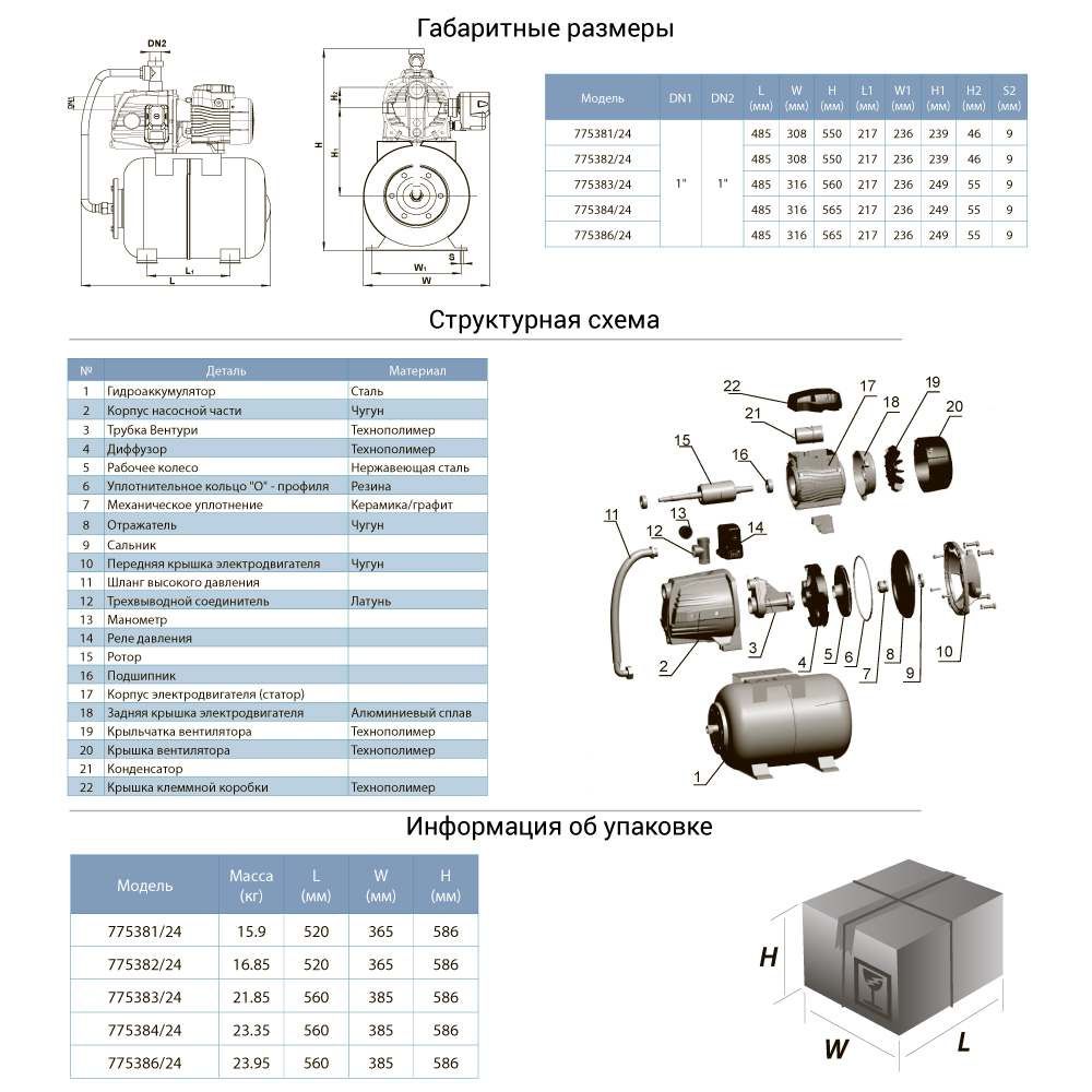 Станции водоснабжения оборудованы гидроаккумулятором объемом 24 литра. Реле давления управляет работой электронасоса. Станции предназначены для перекачки чистой воды и могут применяться для бытового водоснабжения, вспомогательного оборудования, подъема воды в трубопроводах высокого и низкого давления, для оросительных систем садов и огородов, теплиц и парников.