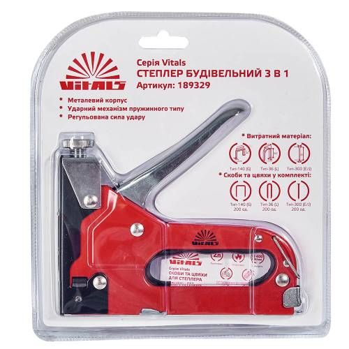 Степлер Vitals 3 в 1 - это идеальный инструмент для строителей и мастеров. Он имеет надежную конструкцию из металла, которая обеспечивает высокую прочность и долговечность. Дополнительно, степлер оснащен удобной рукояткой для удобного использования и имеет большую силу выполнения работ. Благодаря своей многофункциональности, он позволяет вам быстро и легко выполнять различные строительные и ремонтные работы.