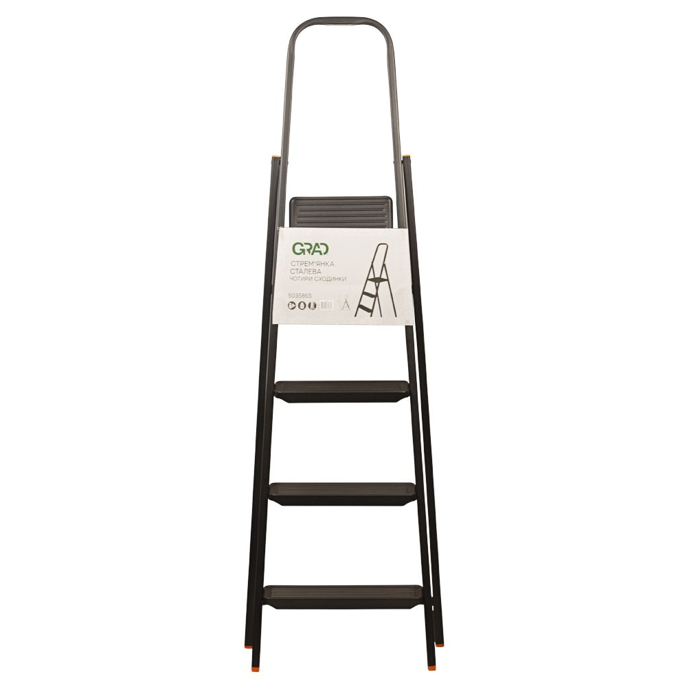 Стальная стремянка GRAD на 4 ступени — легкая и компактная лестница для строительных и ремонтных работ, работы в саду и бытовых нужд. Благодаря прочной конструкции с эпоксидным покрытием, рифленым ступеням и противоскользящим ножкам гарантирует стабильность и безопасность во время эксплуатации.