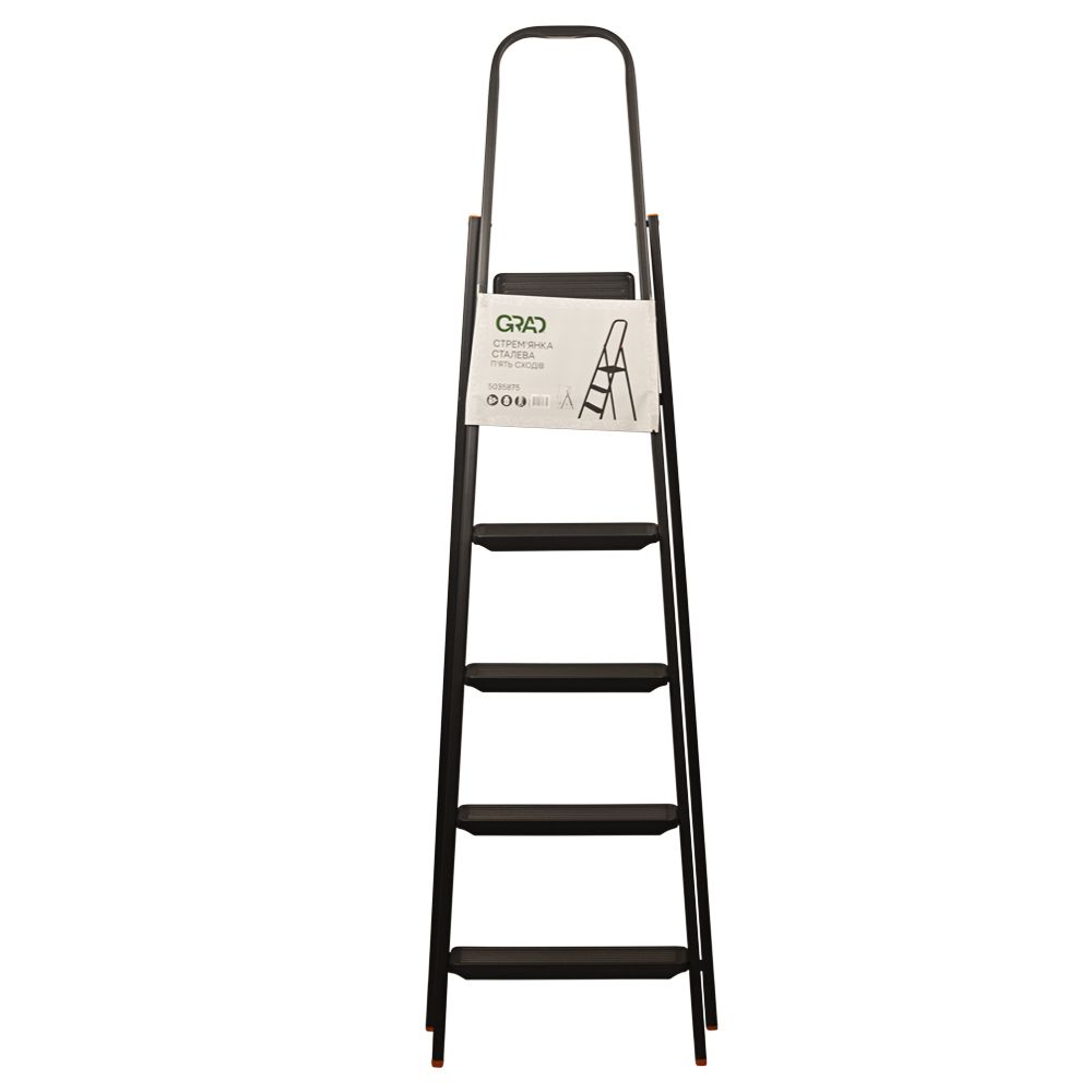 Стальная стремянка GRAD на 5 ступенек — надежный и компактный помощник для строительных и ремонтных работ, работы в саду и бытовых нужд. Благодаря прочной конструкции, рифленым ступеням и противоскользящим ботинкам обеспечивает устойчивость и безопасность при использовании.