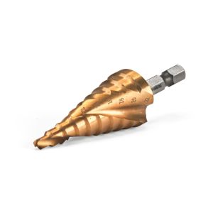 Ступенчатое сверло предназначено для центровки, сверления с шагом 2 мм и снятия фаски за один проход в листовых материалах. Покрытие нитридом титана повышает износостойкость инструмента, обеспечивает плавное сверление и увеличивает ресурс работы. Подходит для металла, пластика и других листовых материалов.