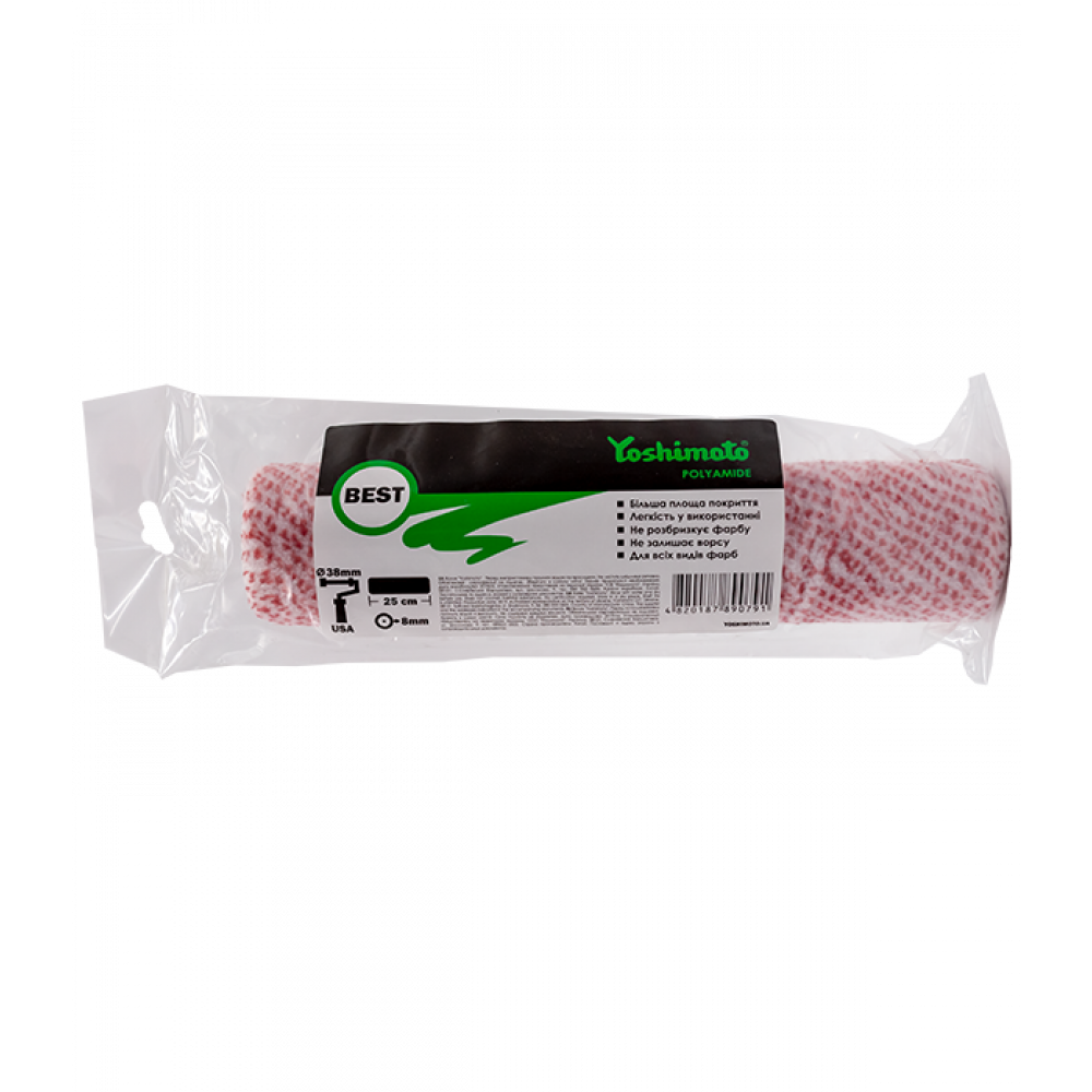 Валик Yoshimoto Polyamide, тип US, 180×38 мм, ворс 8 мм - профессиональный инструмент для покраски с высоким уровнем износостойкости. Изготовлен из полиамида, который эффективно впитывает краску и равномерно ее наносит, обеспечивая большую площадь покрытия с одного замачивания.