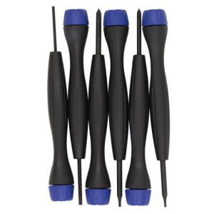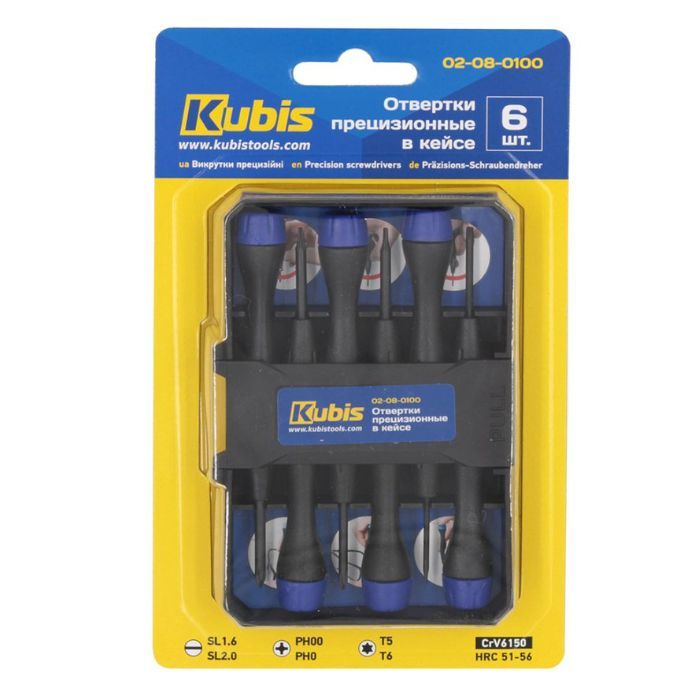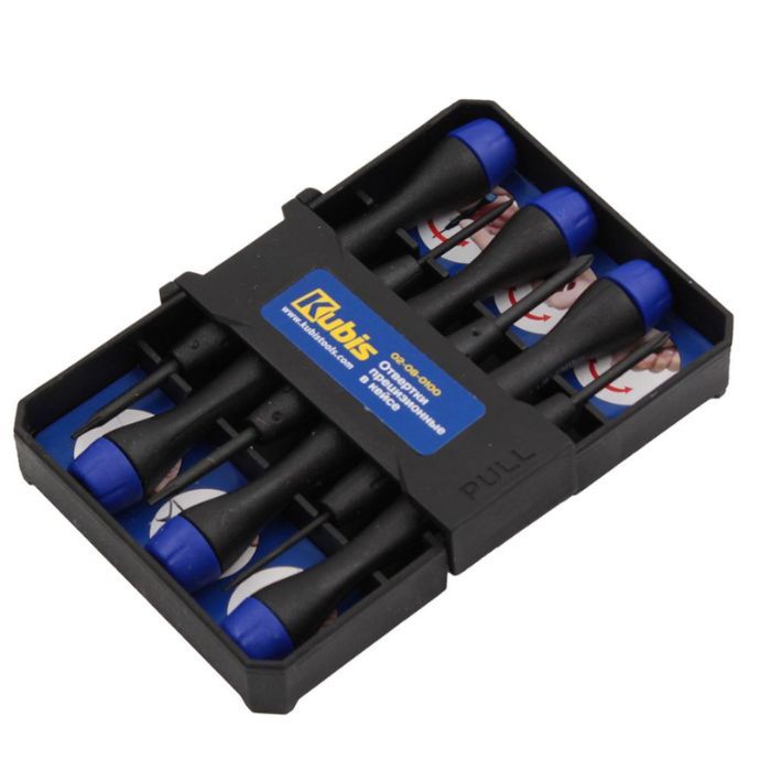 Отвертки - набор прецизионных инструментов, предназначенных для работы с маленькими деталями и механизмами. В наборе содержится 6 отверток с различными типами наконечников, в том числе SL1.6, SL2.0 мм, PH00, PH0, T5, T6. Изготовлены из высококачественной стали CrV6150, которая имеет максимальную твердость HRC51-54. Отвертки удобны в использовании и имеют длительный срок службы. Они позволяют проводить точную и аккуратную работу без повреждения деталей или механизмов. Набор поставляется в удобном кейсе, который обеспечивает хранение и транспортировку.