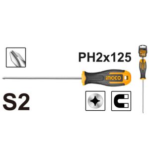 Отвертка крестовая S2 PH2×125 мм INGCO INDUSTRIAL - это инструмент, который поможет вам легко и быстро выполнить ремонтные работы. Отвертка имеет длину 125 мм и изготовлена из высококачественного материала S2, что обеспечивает его прочность и долговечность. Данный товар является незаменимым помощником в различных отраслях - в строительных, автомобильных и других работах.