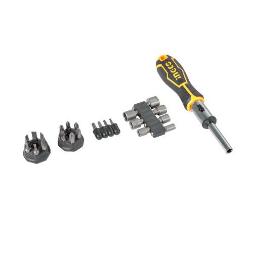 Отвертка-трещотка с битами и головками INGCO подходит для использования в различных сферах. Она идеально подходит для ремонтных работ в домашних условиях, а также для профессиональных работ в строительстве или автосервисной отрасли.