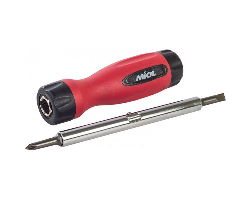 Эта универсальная отвертка с разными типами наконечников и длиной рабочего вала станет незаменимым помощником при проведении строительно-монтажных работ, а также при ремонте и бытовых нуждах. Она используется для выбирания и заворачивания винтов с крестовыми и шлицевыми головками.