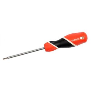 Отвертка звездочная YATO: "TORX" Т15х100мм предназначена для точных работ. Она имеет звездочку (Torx) в качестве наконечника. Длина рабочего стержня составляет 100 мм, а номер шлица - 15. Особенностью этой отвертки является наличие магнитного наконечника, что позволяет держать мелкие детали на наконечнике непосредственно во время работы. Благодаря своим характеристикам, эта отвертка отвечает всем требованиям точных работ.