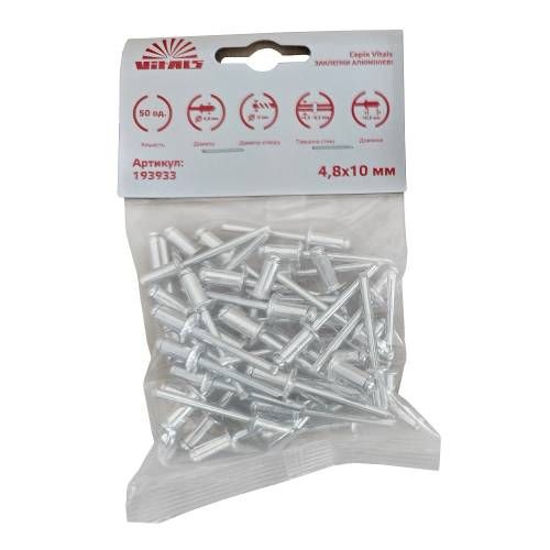 Дополнительные преимущества алюминиевых заклепок Vitals 4,8x10 мм включают: - Возможность использования в условиях высокой влажности и агрессивной среды - Способность выдерживать высокие нагрузки - Обеспечение эстетического вида соединения - Возможность использования на открытом воздухе без риска повреждения - Простота в демонтаже и замене