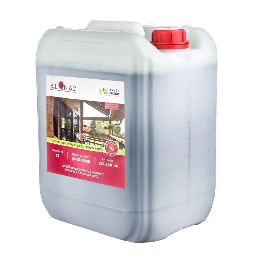 АЛАНА-2 — концентрированное биозащитное средство для древесины, предотвращающее появление плесени, грибка, плесени и насекомых. Глубоко проникает в структуру дерева, сохраняет защитные свойства до 25 лет и не вредит природе.