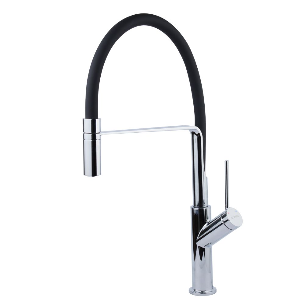 Смеситель кухонный CORSO ADDA Ø25 с черным силиконовым изливом на гайке 9635110 (EB-4B520C) – это сочетание современного дизайна, функциональности и надежности. Его элегантное силиконовое излияние добавляет стильного акцента и гармонично вписывается в любой кухонный интерьер.