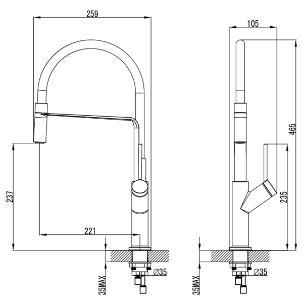 Идеально подходит для кухонь в квартирах, частных домах, а также для кафе и ресторанов. Обеспечивает комфорт при мытье посуды и приготовления пищи, сочетая удобство и эстетику.