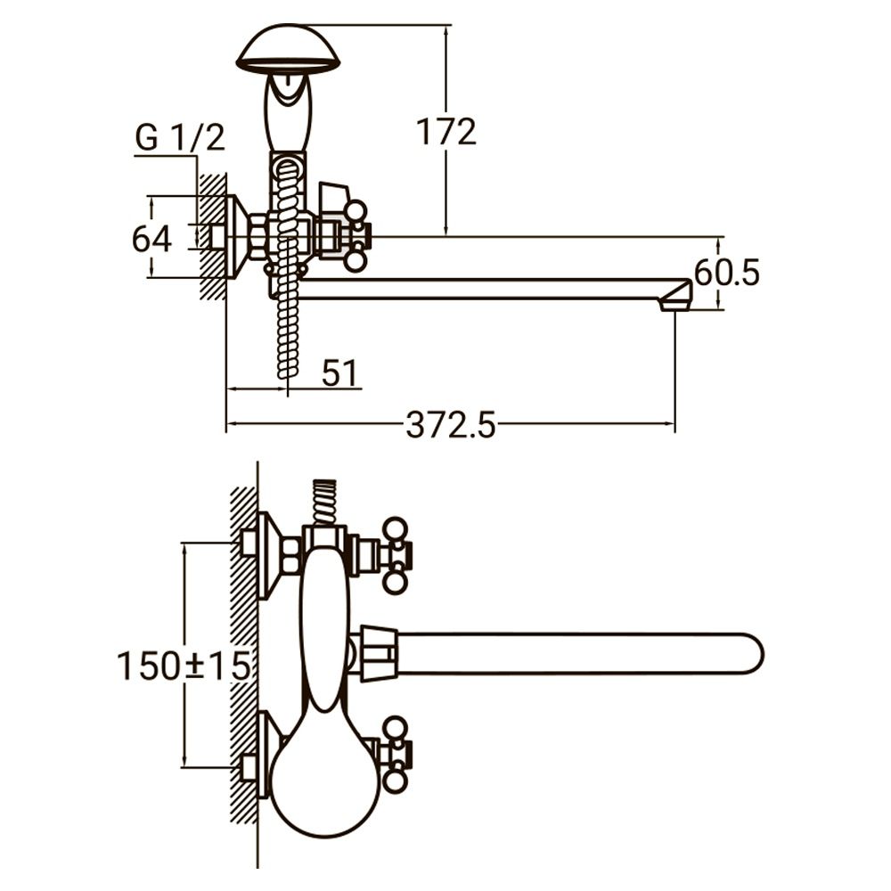 Смеситель для ванны AQUATICA PL-2C255C Ø1/2" с прямым изливом 350 мм и встроенным дивертором (9777200) — функциональный смеситель для ванны, объединяющий современный дизайн, практичность и надежность. переключение между изливом и душем.