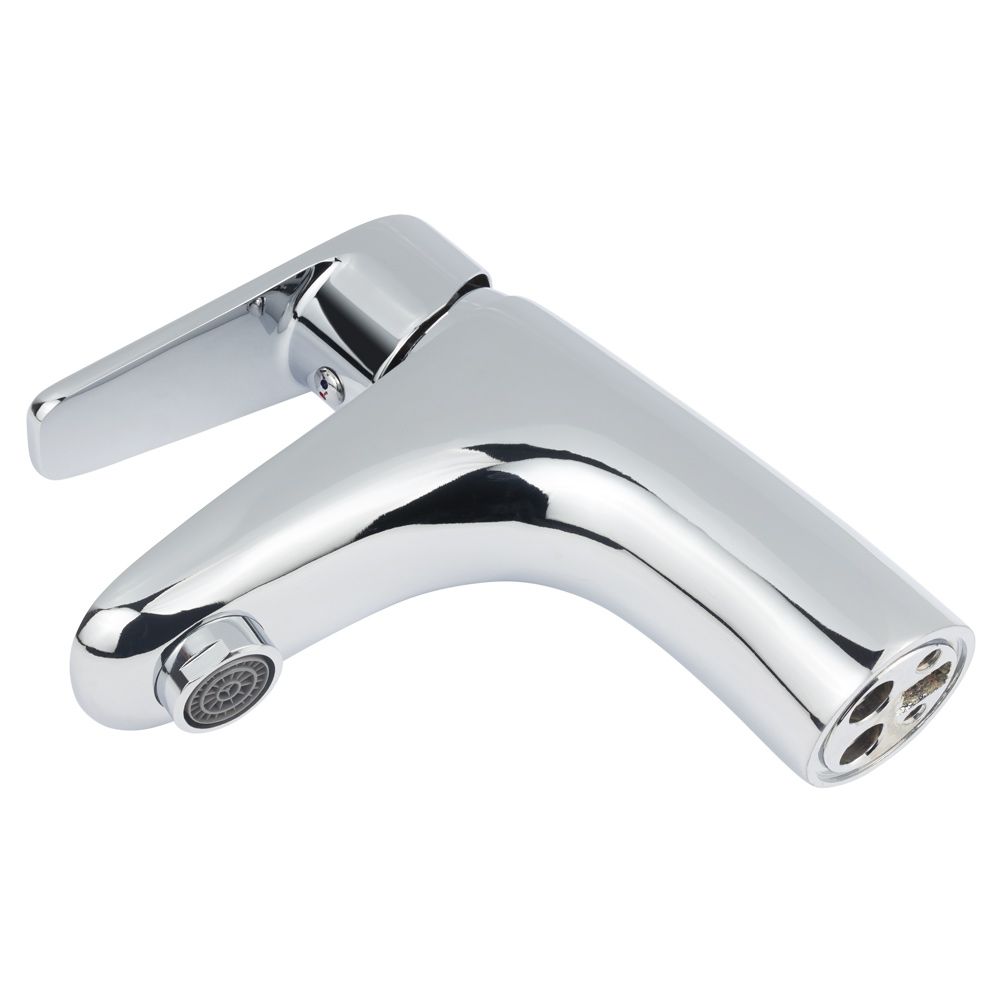 — компактный однорычажный смеситель с монолитным изливом, хромоникелевым покрытием и надежным креплением на шпильке. Поставляется с гибкими подводами в нейлоновой оплетке.