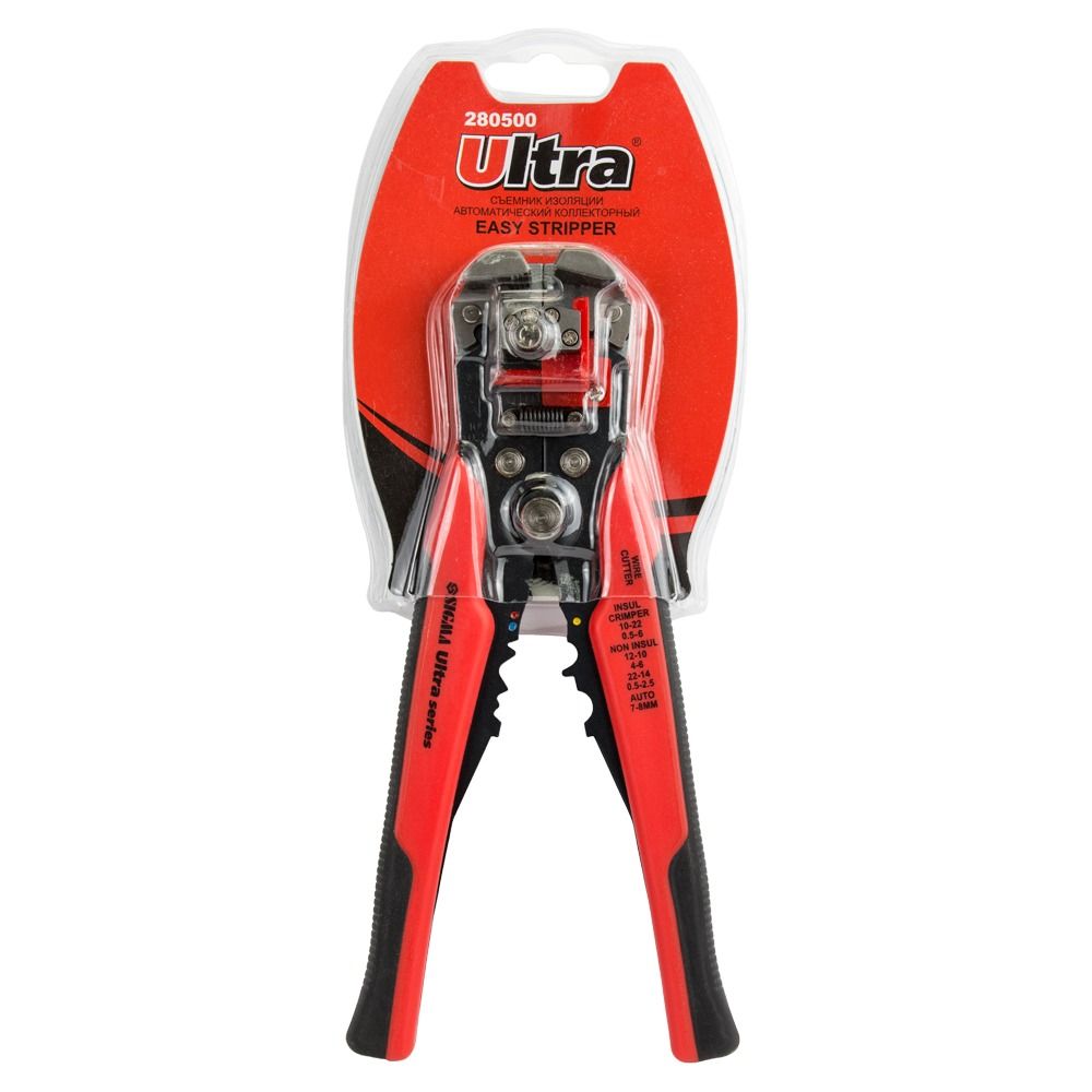 Автоматический съемник изоляции ULTRA 4371032 предназначен для быстрого и аккуратного снятия изоляции с проводов сечением от 0,2 до 6 мм. Инструмент имеет удобный механизм самонастройки, позволяющий работать с разными типами кабелей без их повреждения. Подойдет для электромонтажных работ в быту и профессиональном использовании.
