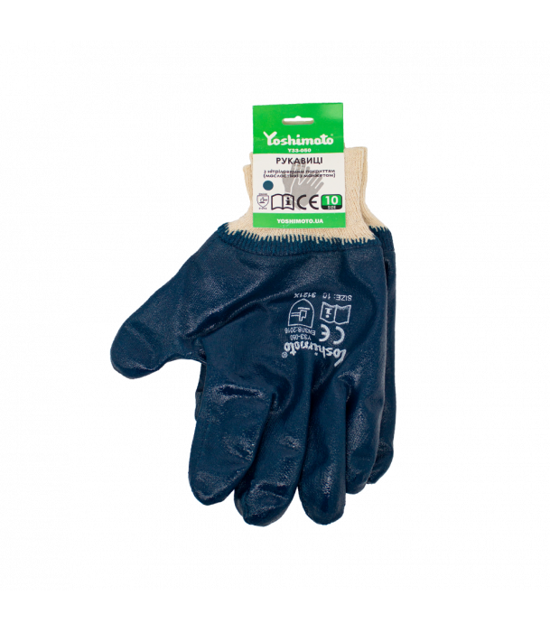 Маслостійкі рукавички Yoshimoto з манжетом розміру 10 забезпечують надійний захист рук при роботі з гострими предметами, абразивними матеріалами, а також з жирами, маслами та нафтопродуктами. Нітрилове покриття запобігає проникненню води і підвищує зносостійкість рукавичок.