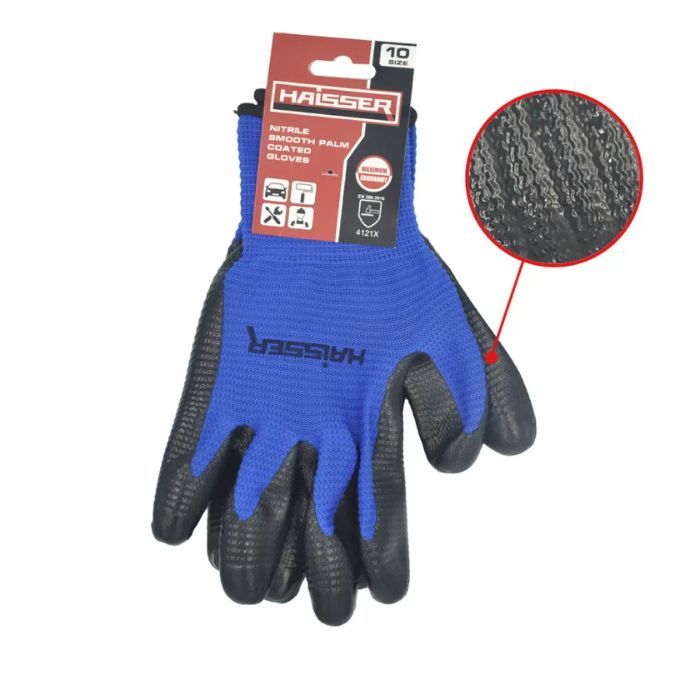 Рукавички захисні сірі нейлон з подвійним нітриловим покриттям Haisser