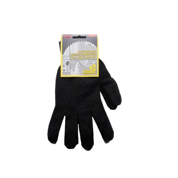 Рукавиці трикотажні теплі подвійні чорні без ПВХ крапки мають ще кілька унікальних властивостей, які роблять їх переважаючими. Вони легкі і зручні у використанні, дозволяючи вільно рухатися пальцями. Вони легко миються і швидко сохнуть, що робить їх практичним вибором для щоденного використання. Размір 10 є універсальним і підходить для багатьох людей. Ці рукавиці ідеально підходять для використання в холодний період року, забезпечуючи комфорт і захист рук.