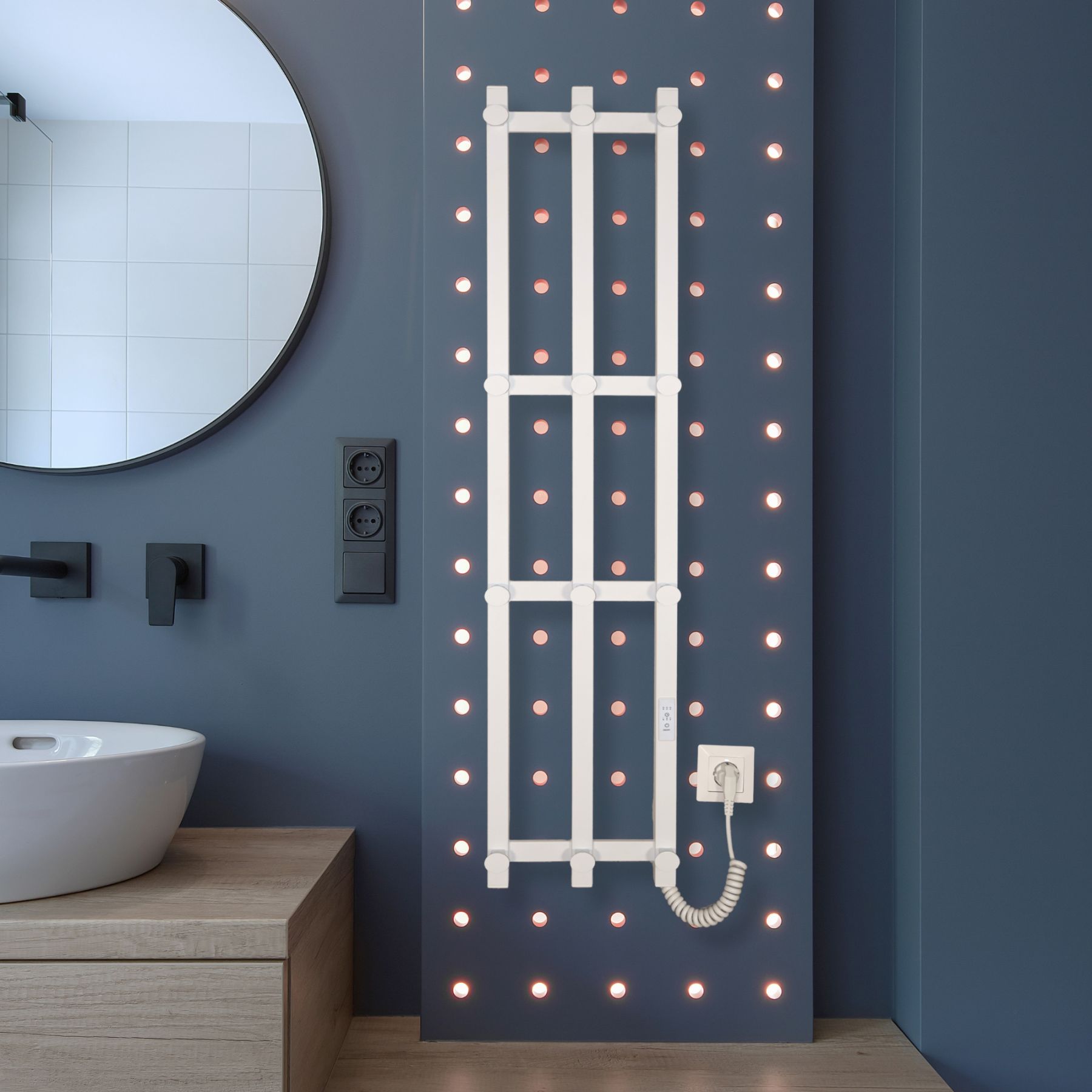Електрична рушникосушарка Giacomo 1190x270 виготовлена за сучасною технологією сухого ТЕНу. Обладнана подвійним виводом живлення, що дозволяє підключати її з будь-якого боку на вибір. У комплект входить система прихованого підключення. Модель має 12 вішалок для рушників.