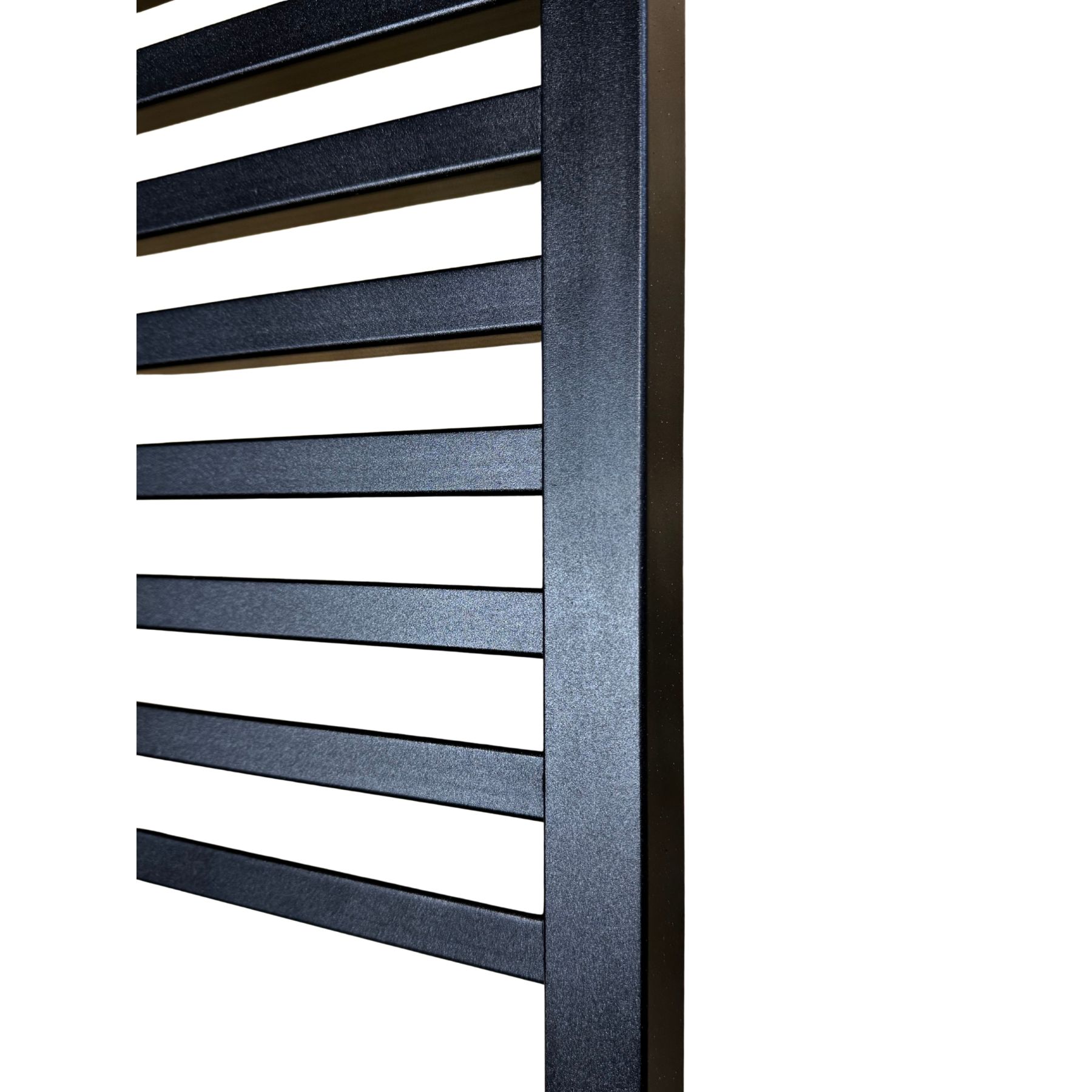 Конструкція складається з 21 ребра розміром 2020 мм та стійок 3030 мм з квадратного профілю, що створюють чіткі лінії та гармонійні пропорції. Стриманий, але виразний стиль доступний у чотирьох варіантах покриття: чорний мат, чорний глянецьь, білий мат та білий глянецьь.