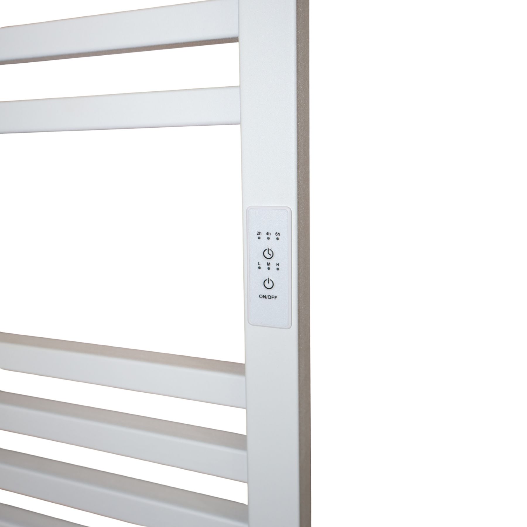 Конструкція складається з 21 ребра 2020 мм і стійок 3030 мм з квадратного профілю, що утворюють гармонійні пропорції та чіткі лінії. Модель доступна у чотирьох стильних відтінках: чорний мат, чорний глянецьь, білий мат, білий глянецьь, що дозволяє органічно інтегрувати рушникосушарку в будь-який інтер’єр.