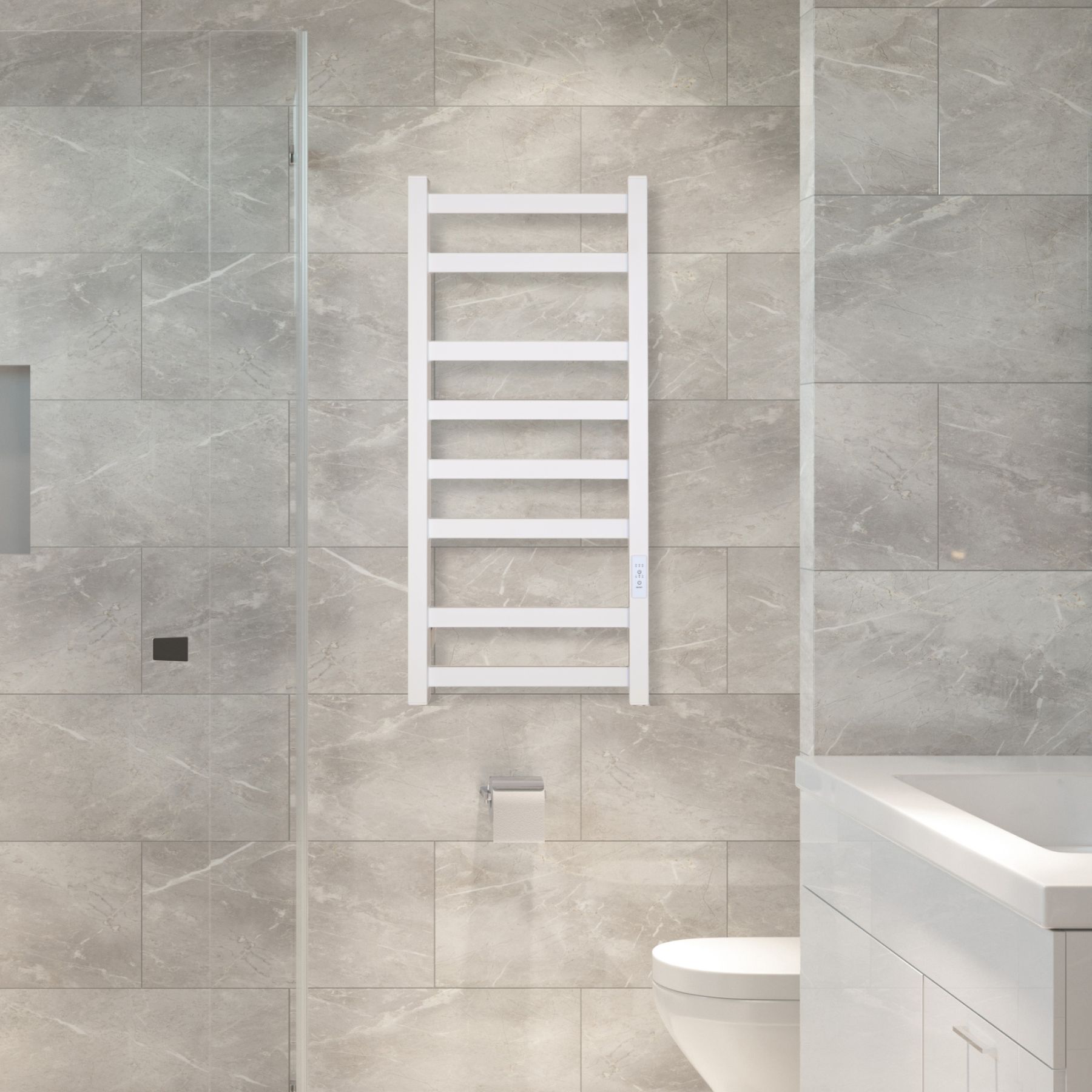 Електрична рушникосушарка Luca 790x370 виготовлена за сучасною технологією сухого ТЕНу. Обладнана подвійним виводом живлення, що дозволяє підключати її з будь-якого боку. У комплект входить система прихованого підключення. Конструкція включає 8 профільних ребер розміром 3010 мм та профільні стійки шириною 30 мм.
