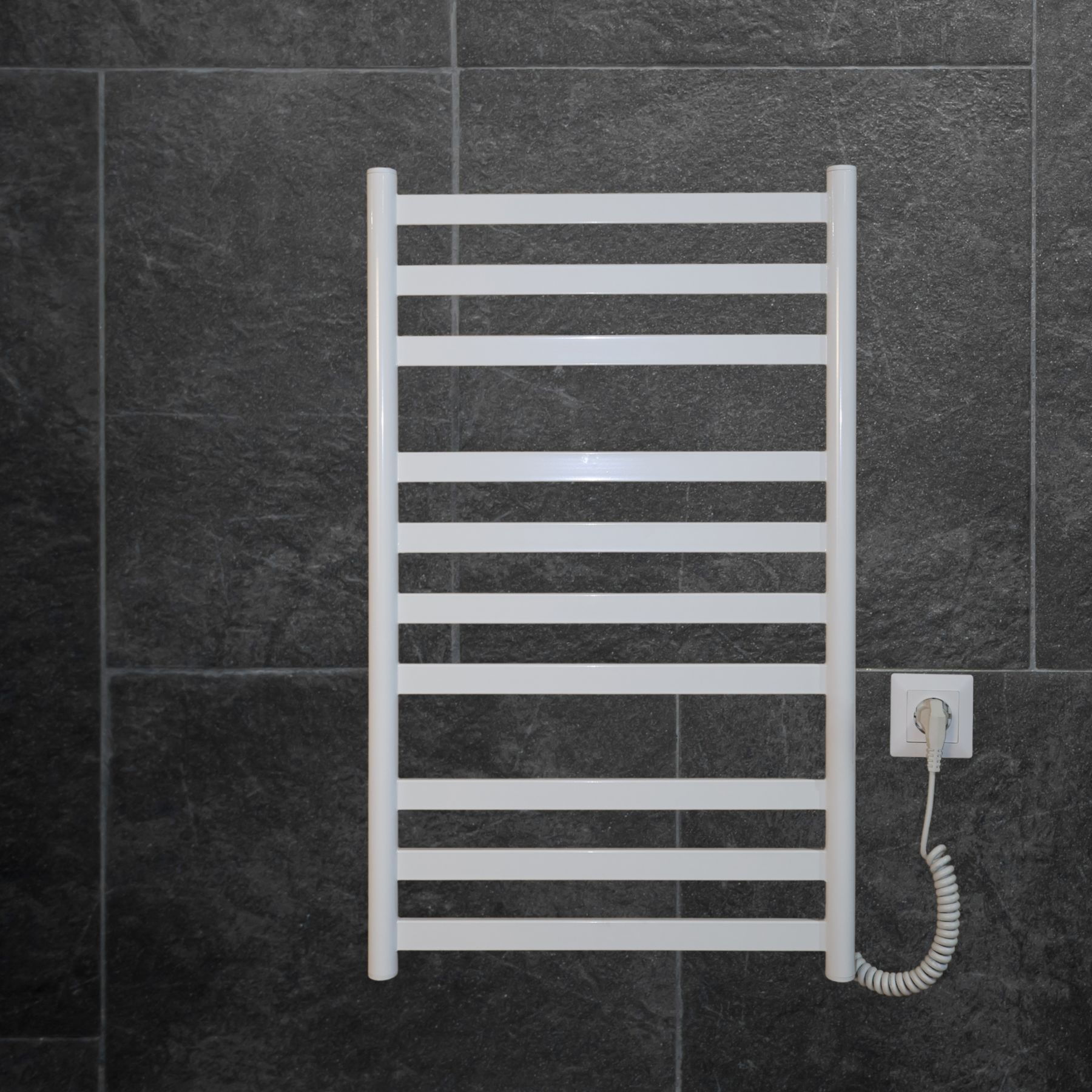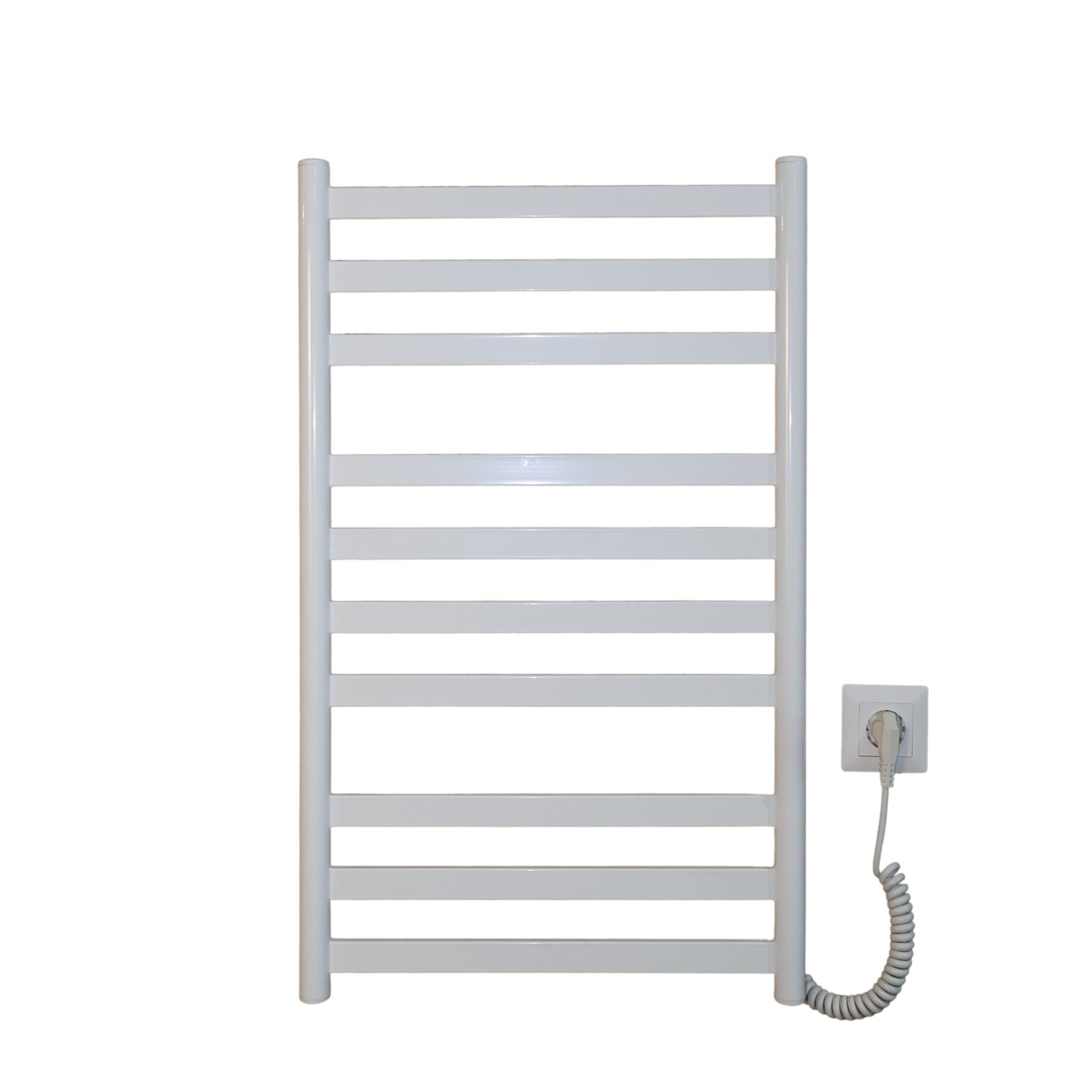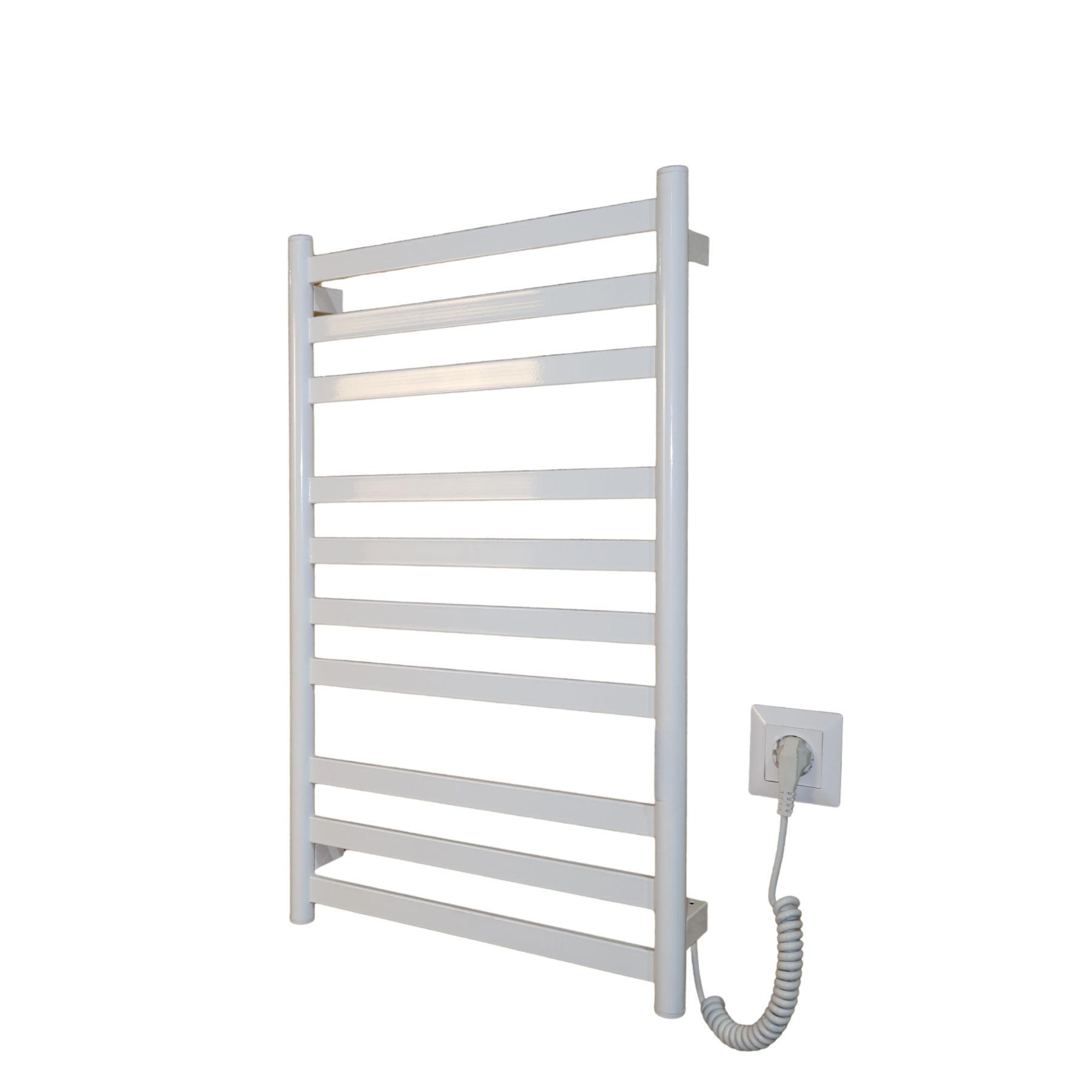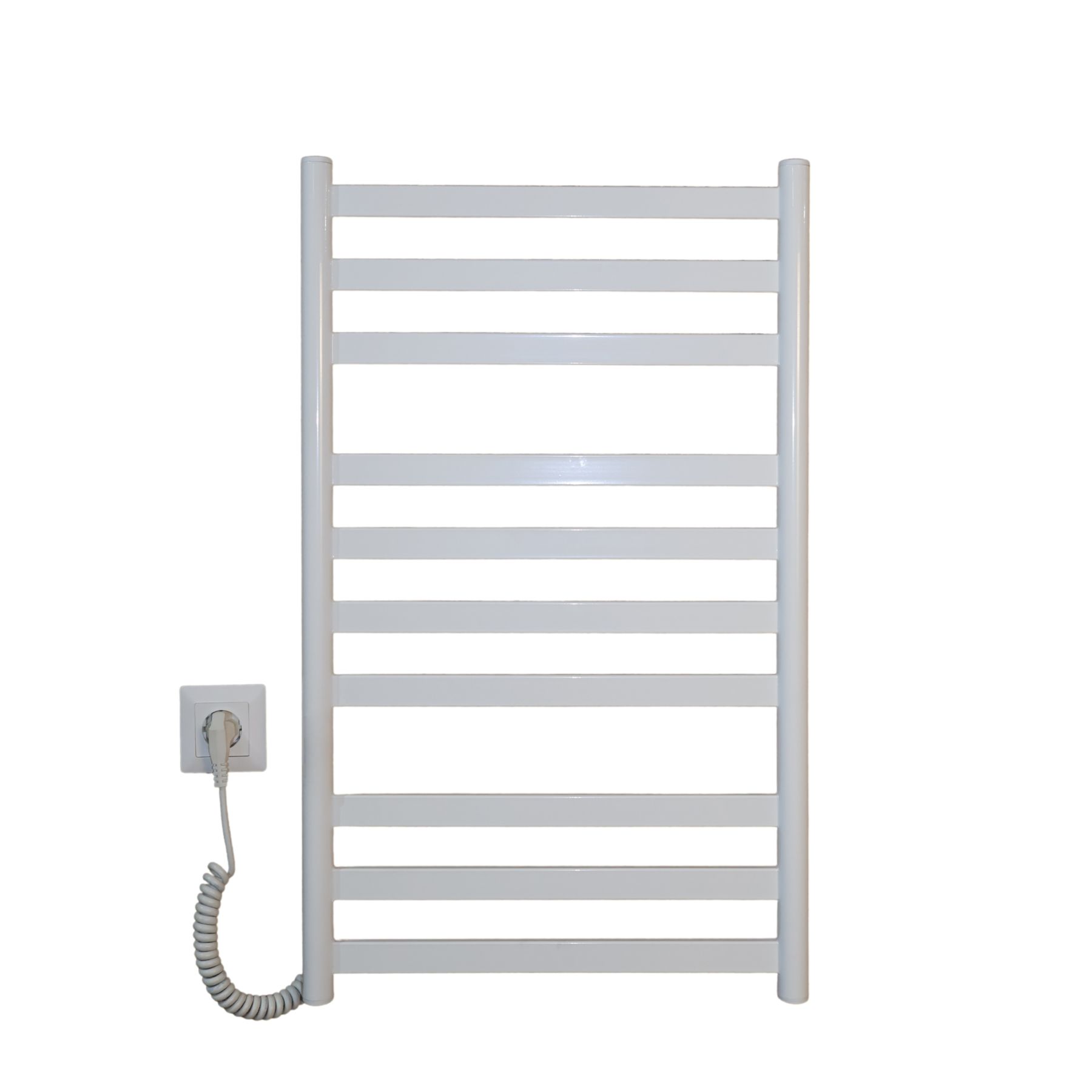Електрична рушникосушарка Mia 790x490 виготовлена за сучасною технологією сухого ТЕНу. Обладнана подвійним виводом живлення, що надає можливість підключати сушарку з будь-якого боку на Ваш вибір. Оснащена комплектом прихованого підключення. Модель має 10 профільних ребер 30*10 мм та круглі стійки діаметром 30 мм. Форми навіяні італійським вайбом створюють просту й доконечно привабливу геометричну гармонію. Виготовлена з вуглецевої сталі та має надійне порошкове покриття. Сушарка виготовляється в чотирьох кольорах: чорний мат, чорний глянецьь, білий мат та білий глянецьь. Температурний режим 60°С +/- 5 °C. Потужність 155 Вт.