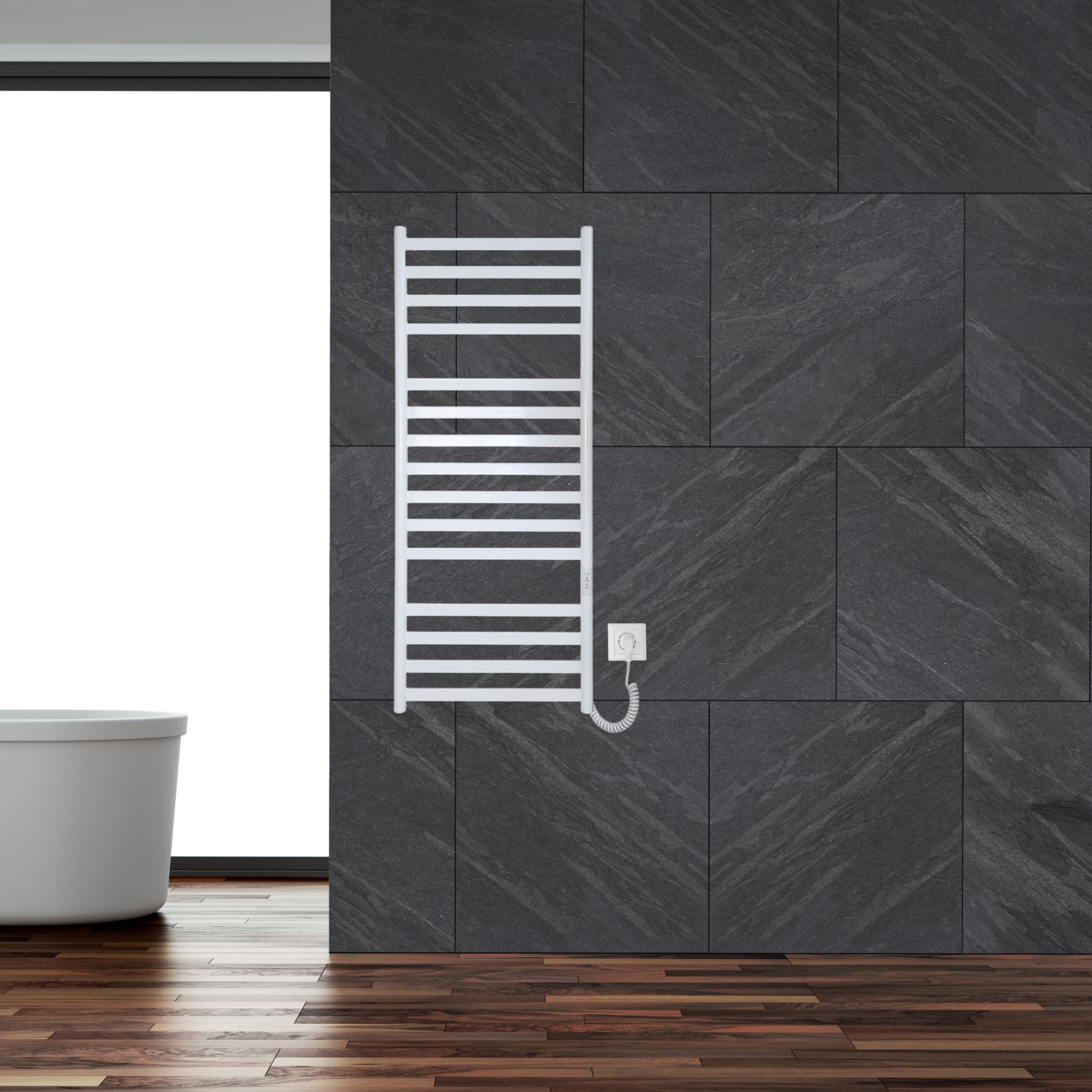 Електрична рушникосушарка Mia 1190x490 виготовлена за сучасною технологією сухого ТЕНу, що забезпечує швидкий нагрів, стабільну температуру та енергоефективність.