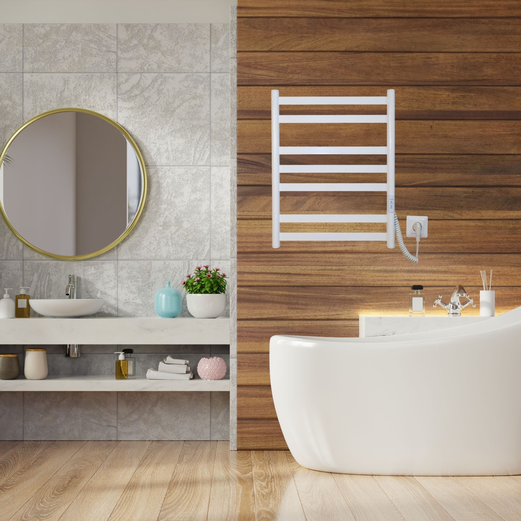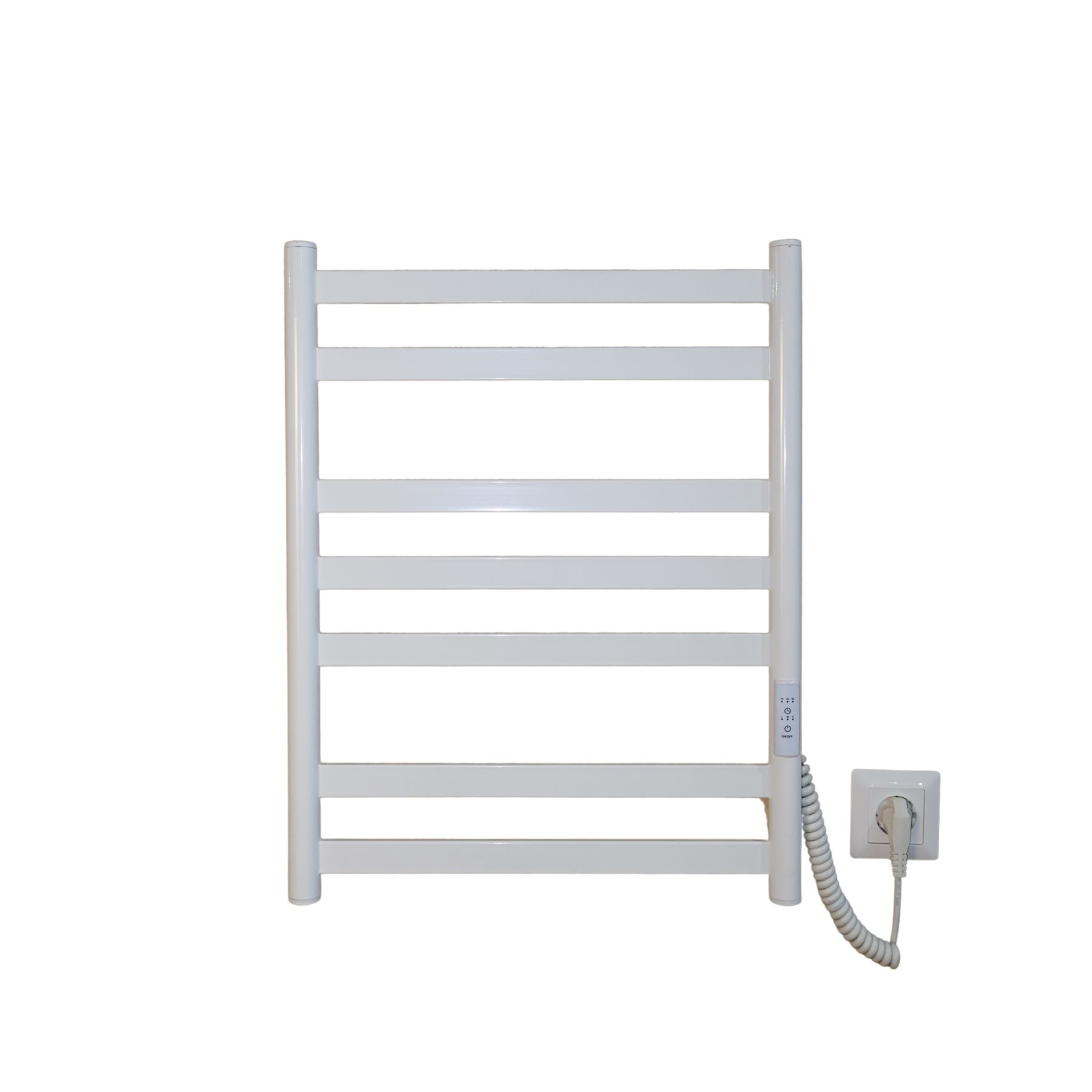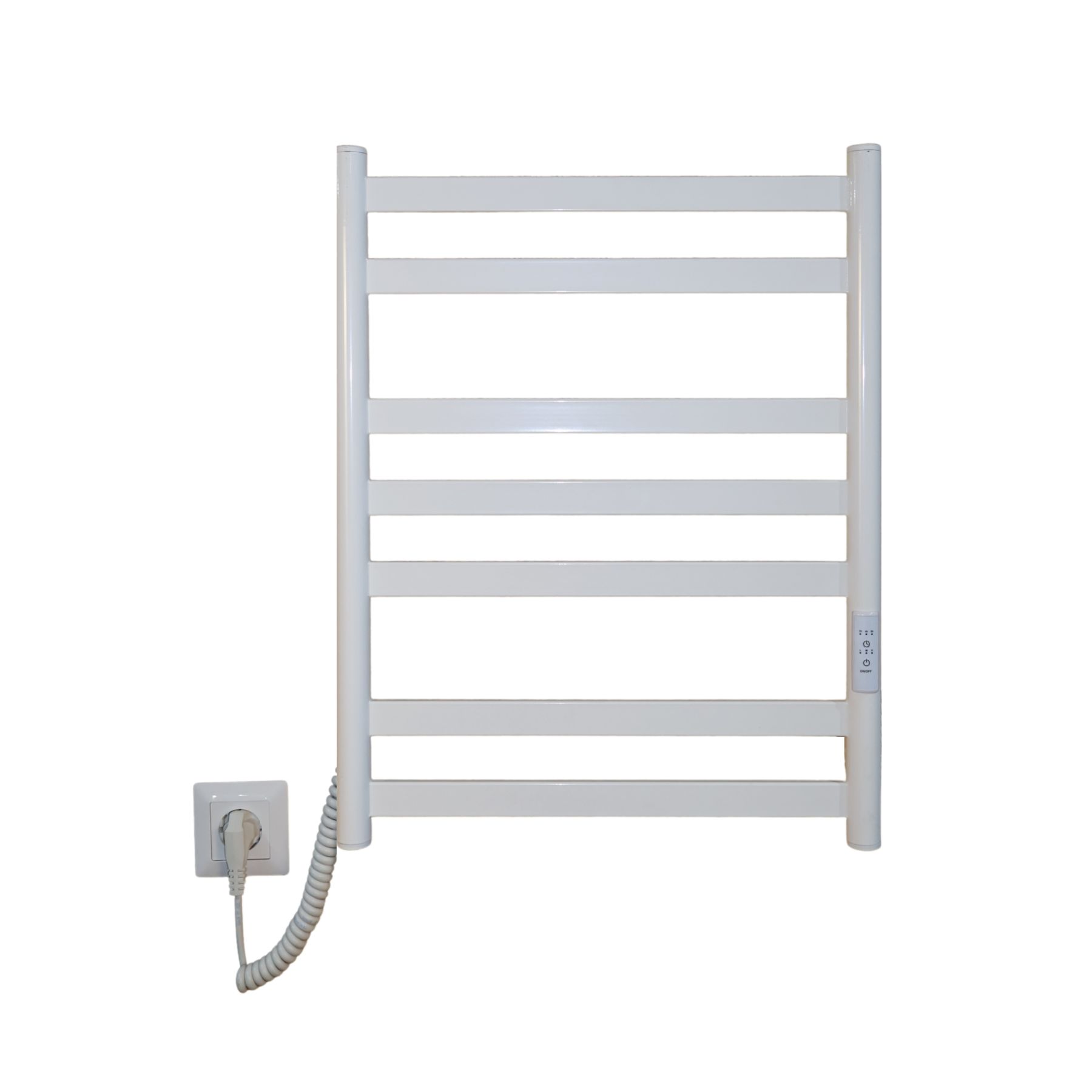 Електрична рушникосушарка Mia 590x490 виготовлена за сучасною технологією сухого ТЕНу, що забезпечує швидкий нагрів, стабільну температуру та економне споживання електроенергії.