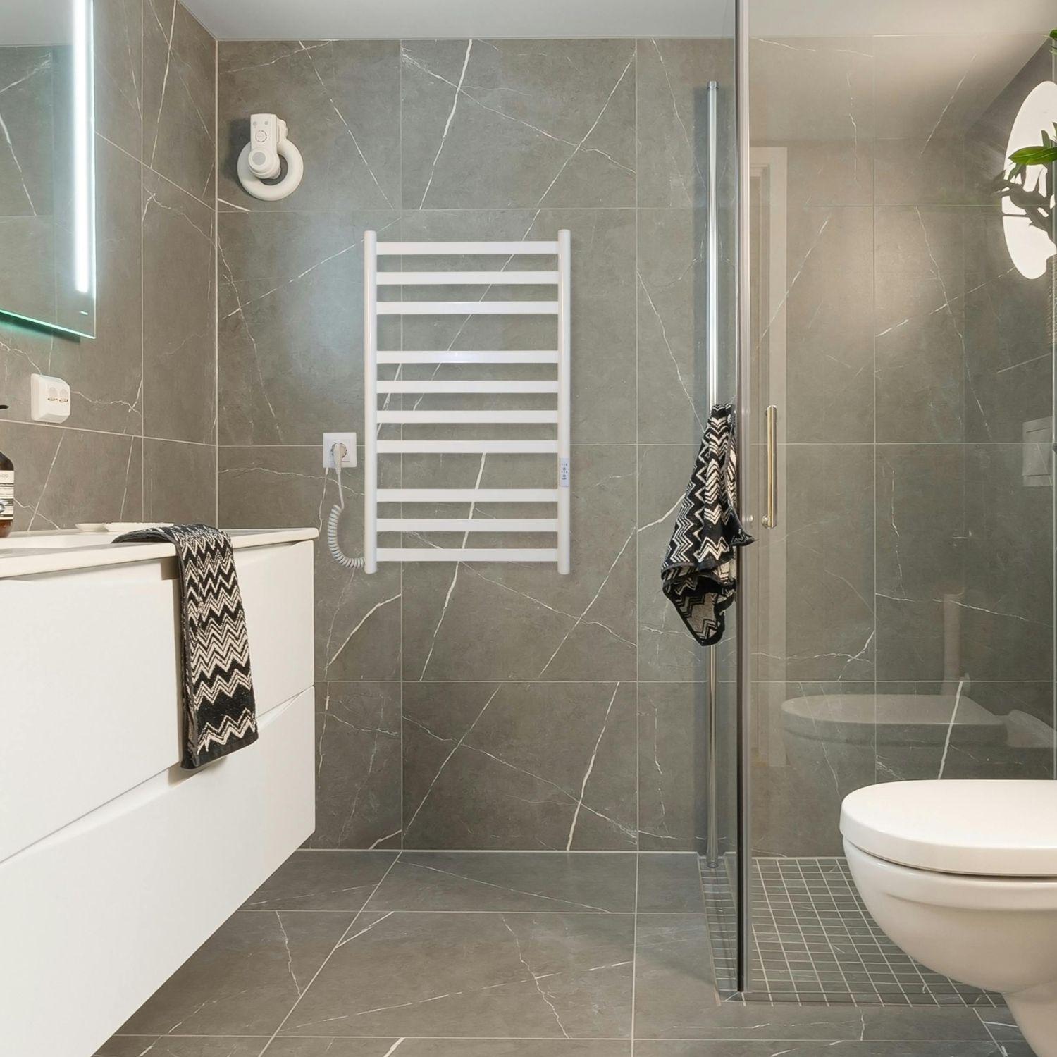 Електрична рушникосушарка Mia 790x490 виготовлена за сучасною технологією сухого ТЕНу, що забезпечує швидкий нагрів, стабільне підтримання температури та економне енергоспоживання.
