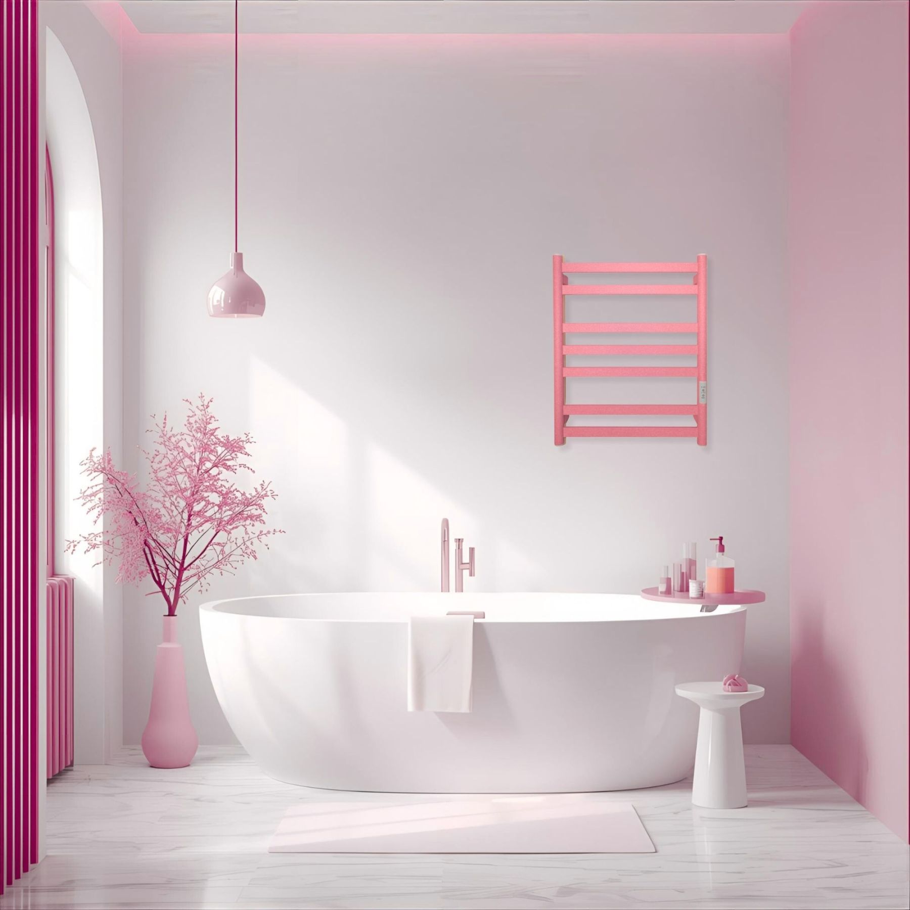 Електрична рушникосушарка Mia 590x490 виготовлена за сучасною технологією сухого ТЕНу, що забезпечує швидкий нагрів, стабільну температуру та економне споживання електроенергії.