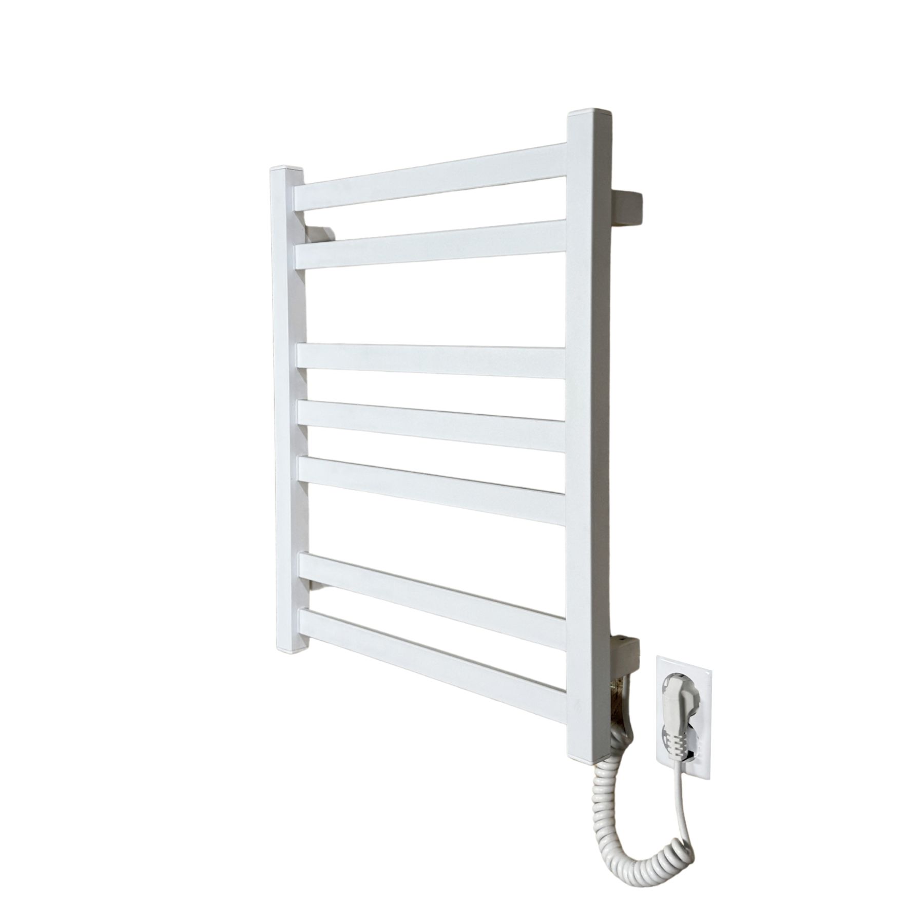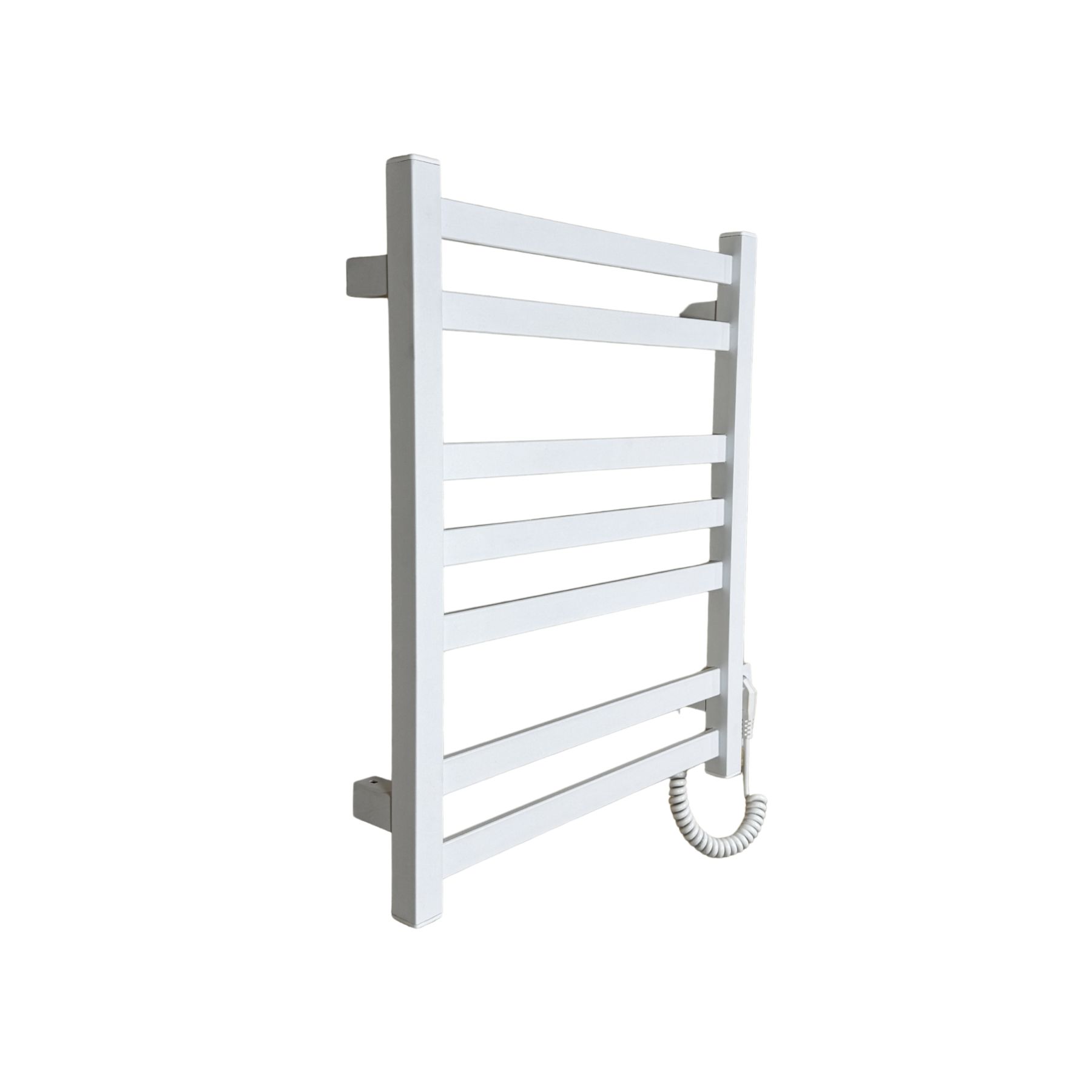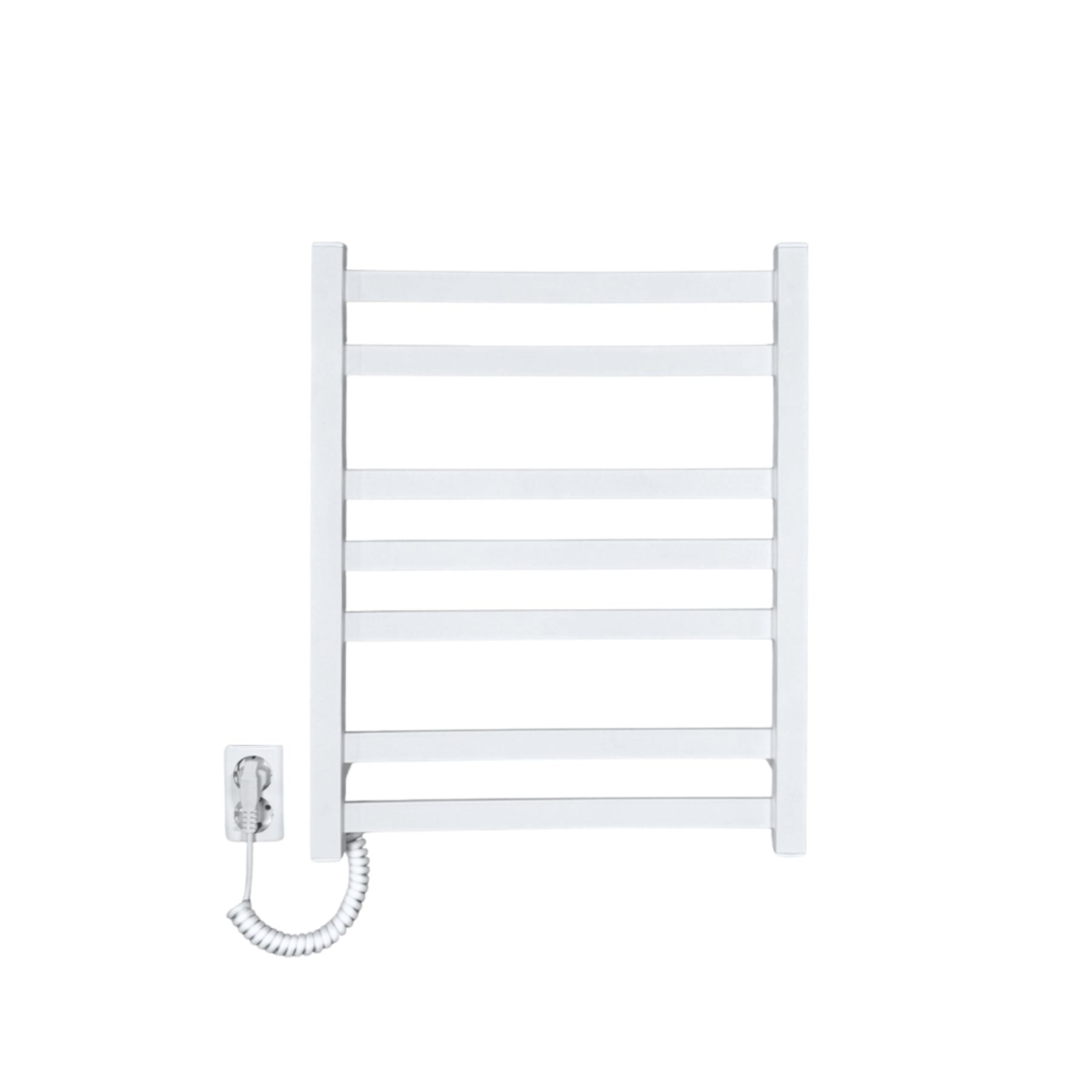 Конструкція складається з 7 профільних ребер розміром 3010 мм та квадратних стійок 3030 мм, які створюють чіткі, гармонійні лінії. Лаконічний стиль доступний у чотирьох кольорах: чорний мат, чорний глянецьь, білий мат та білий глянецьь, що дозволяє легко інтегрувати рушникосушарку у будь-який інтер’єр.