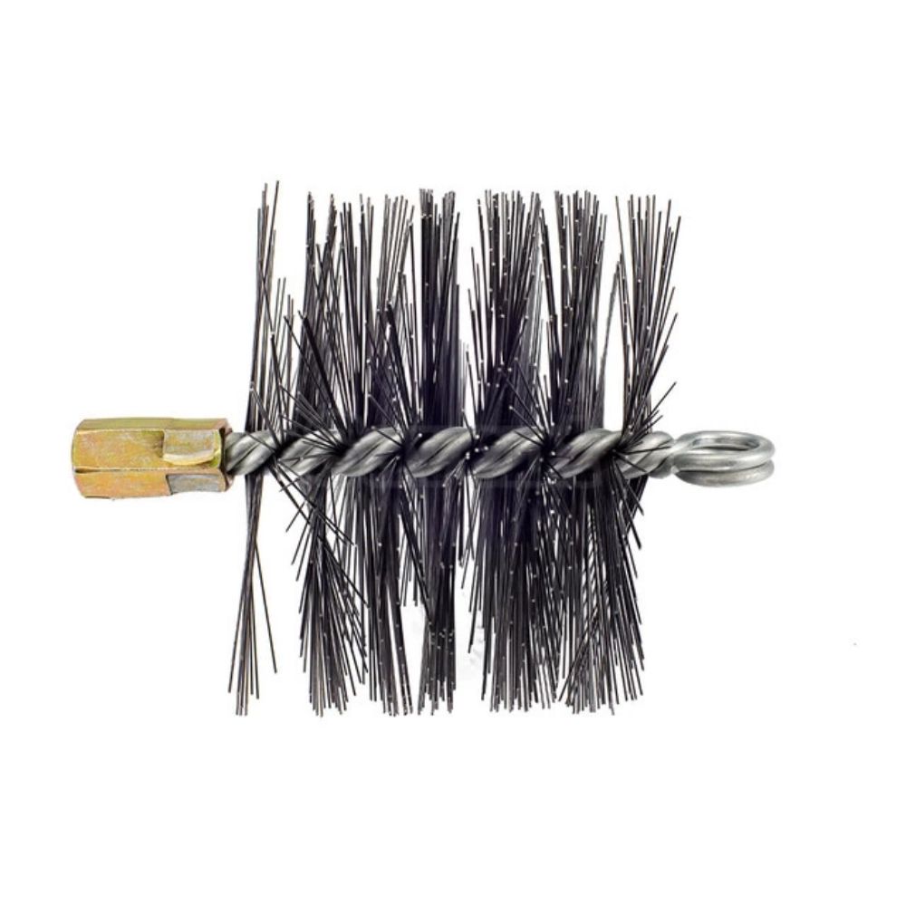 Металева щітка Savent діаметром 150 мм призначена для очищення димових каналів від сажі, смол та твердих відкладень. Завдяки міцній сталевій конструкції та жорсткій пружинній щетині вона ефективно видаляє забруднення зі стінок димоходу.