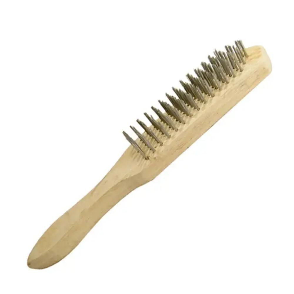 Ручна щітка Intertool ВТ-0004 з 6 рядами сталевого дроту призначена для інтенсивного очищення металевих поверхонь від іржі, окалини, фарби та бруду. Завдяки дерев’яному корпусу забезпечує зручний хват і довговічність.
