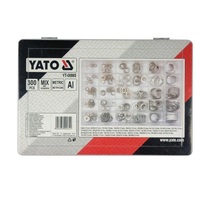 Набір алюмінієвих шайб YATO призначений для використання під пробки зливу масла, забезпечуючи надійне ущільнення та запобігання витіканню рідини. Комплект включає 300 штук шайб різних розмірів, від 5x9x1.0 мм до 28x36x2.0 мм, що робить його універсальним рішенням для різних застосувань.