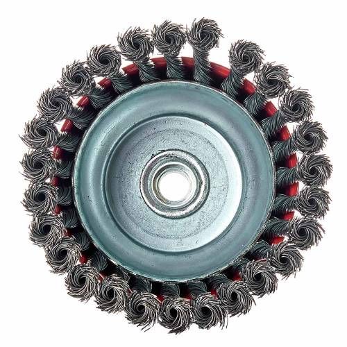 Щітка-чашка Vitals плетена сталь 125 мм М14, 0,5 мм - це універсальний інструмент, який використовується для очищення, шліфування та полірування різних поверхонь. Ця щітка-чашка виготовлена з високоякісної плетеної сталі, що забезпечує довговічність і надійність в роботі. Завдяки різьбе М14, щітка-чашка може легко монтуватися на будь-який кутовий шліфмашину з відповідним шпинделем. Діаметр 125 мм робить цей інструмент відмінним для роботи з великими поверхнями. Завдяки товстині 0,5 мм, щітка-чашка забезпечує ефективну роботу і добре тримається на поверхності. Вона може використовуватися для обробки металу, дерева, пластику та інших матеріалів. Цією щіткою-чашкою ви з легкістю очистите ріжучі краї, видалите стару фарбу або ржавчину, а також підготуєте поверхню для подальшої обробки. Вона оснащена довгими і міцними ворсинками, які забезпечують якісну і ефективну роботу. Дана щітка-чашка Vitals плетена сталь 125 мм М14, 0,5 мм є незамінним інструментом для будівництва, ремонту та реставрації.