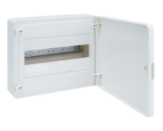 Щиток із пластмаси. Встановлення дверцят праворуч або ліворуч, без демонтажу кришки; замок та ключі не входять до комплектації. Дверцята на 180°.