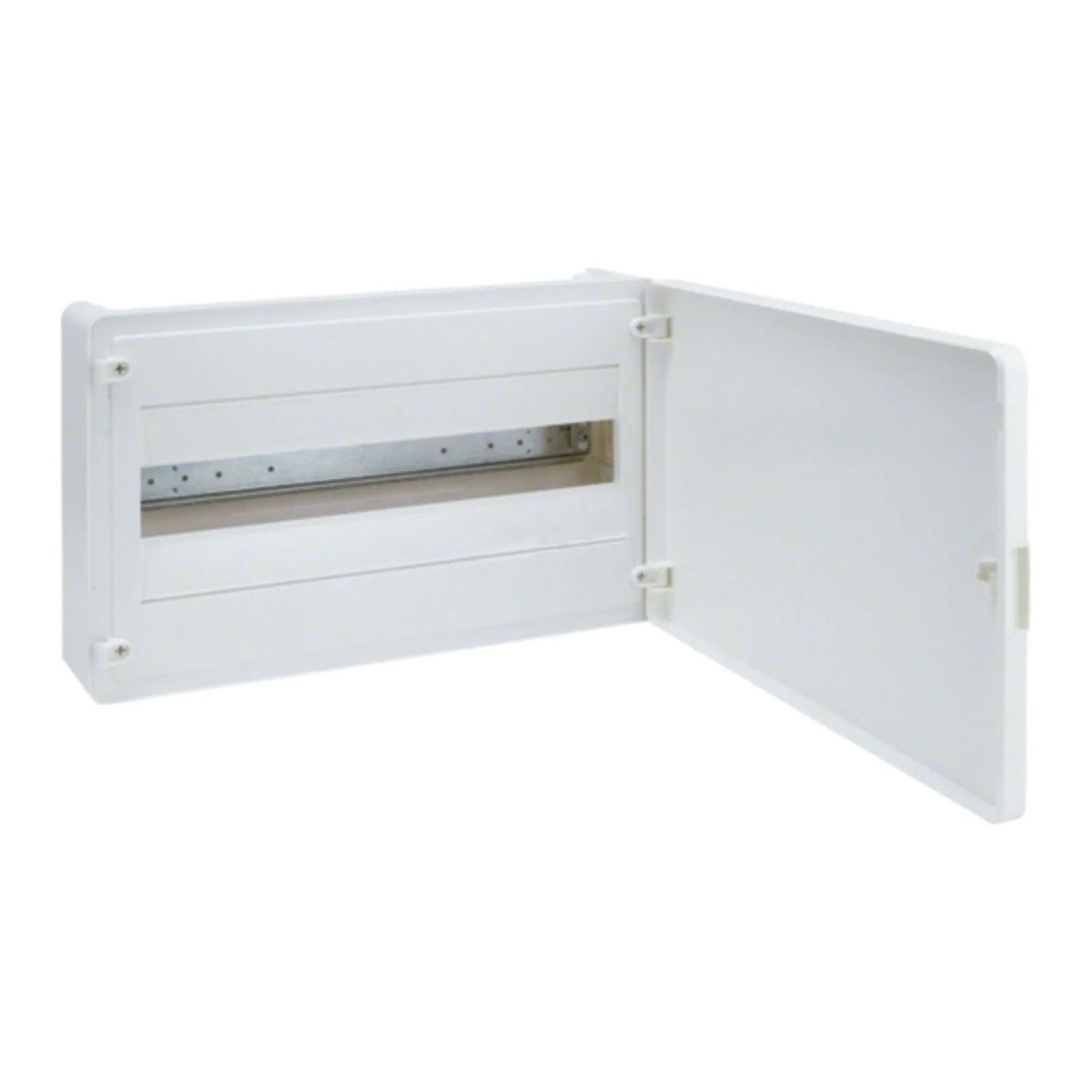 Щиток із пластмаси. Встановлення дверцят праворуч або ліворуч, без демонтажу кришки; замок та ключі не входять до комплектації. Дверцята на 180°.