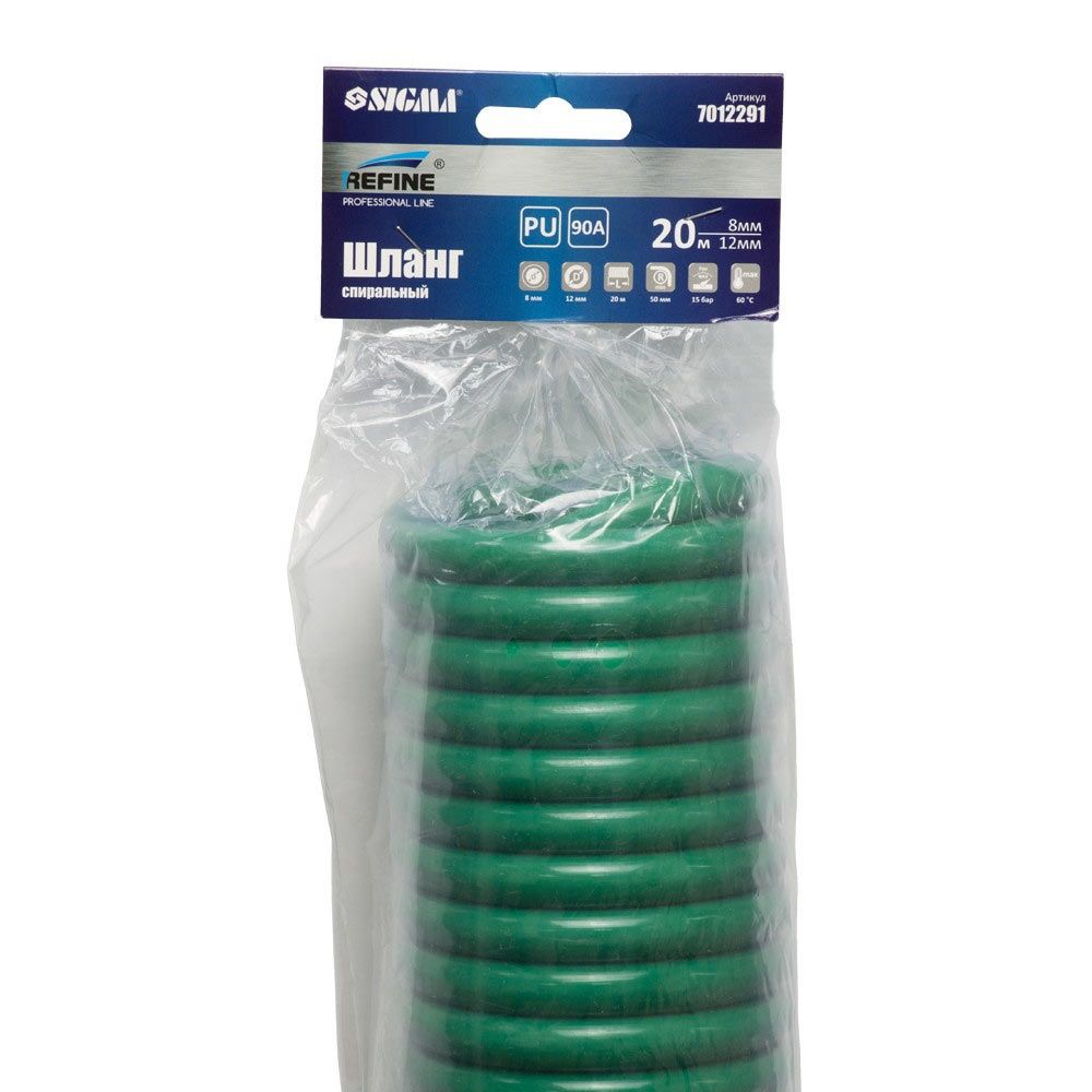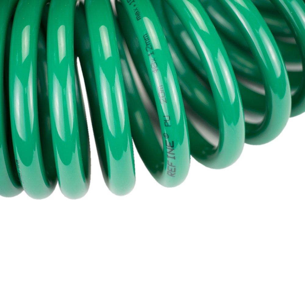 Шланг спіральний поліуретановий REFINE 20 м, 8×12 мм (7012291) застосовується для подачі повітря в пневматичних системах стандартного тиску. Виготовлений із міцного поліуретану, він стійкий до здавлювання, перегинів, скручування і швидко відновлює первинну форму після навантаження. Має високу стійкість до гідролізу, ультрафіолетових променів, озону, мікроорганізмів і агресивних середовищ.
