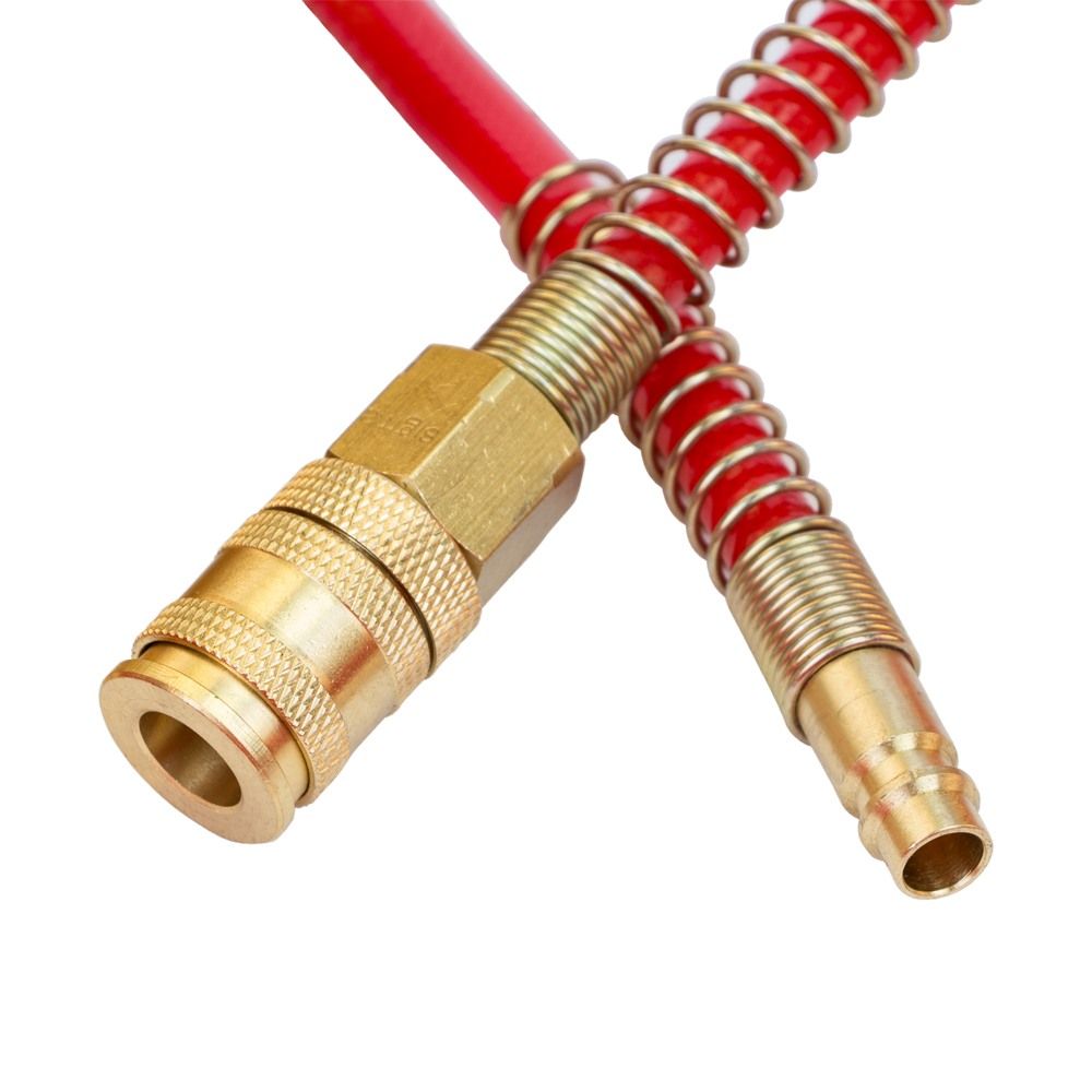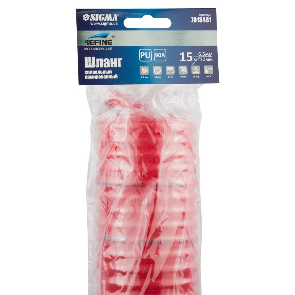 Шланг спіральний поліуретановий (PU) армований 15м 6.510мм REFINE (7013481) використовується для передачі повітря в пневматичних системах стандартного тиску. Має хорошу стійкість до механічних впливів (перегини, здавлювання, скручування) і швидко відновлює свою первинну форму після зняття механічного впливу. Шланг не схильний до гідролізу і має хорошу стійкість до впливу озону і мікроорганізмів.
