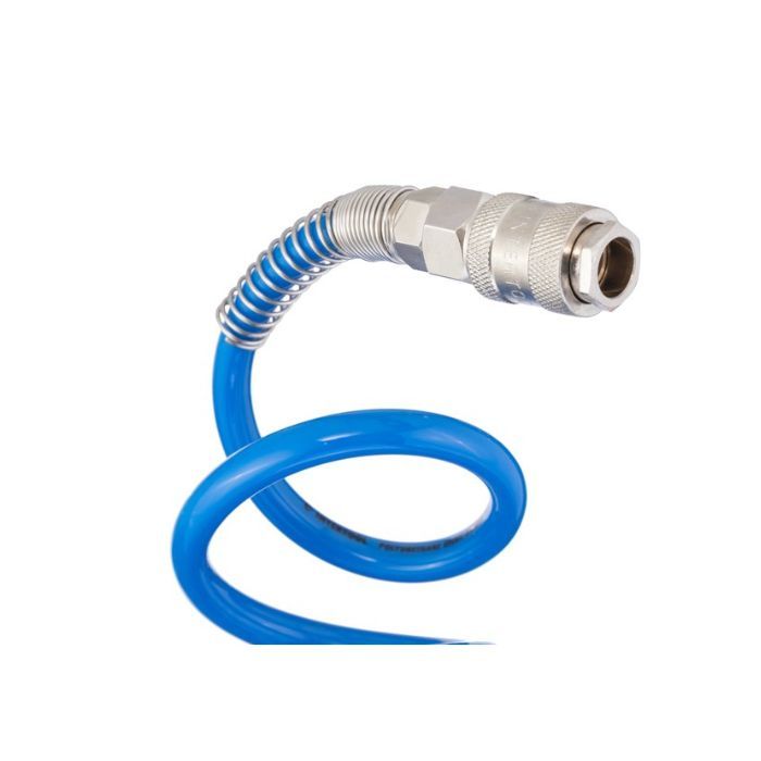 Основні переваги цього шлангу:- Висока міцність і довговічність завдяки використанню поліуретану- Гнучкість і легкість використання завдяки спіральній конструкції- Просте і швидке підключення і відключення завдяки швидкоз'ємним з'єднанням- Висока якість матеріалу та виготовлення забезпечують безпеку при використанні