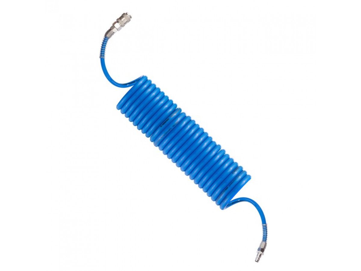 Шланг спіральний поліуретановий з швидкоз'ємними з'єднаннями 6,5х10 мм 20 м ідеально підходить для використання в різних сферах, таких як пневматичні системи, садове господарство, автомобільний ремонт, будівництво та багато інших.