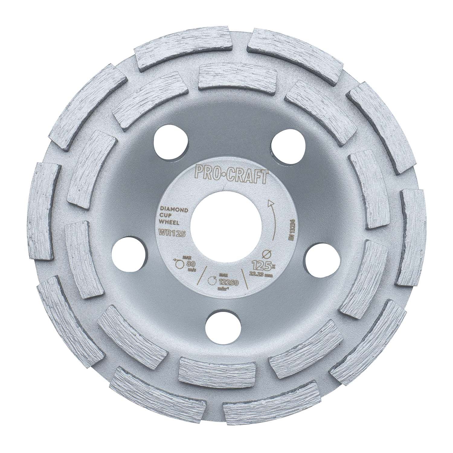 Конструкція чашки розрахована на інтенсивну роботу та стабільну продуктивність. Діаметр 125 мм і стандартний посадковий отвір 22,23 мм забезпечують сумісність із більшістю кутових шліфувальних машин.